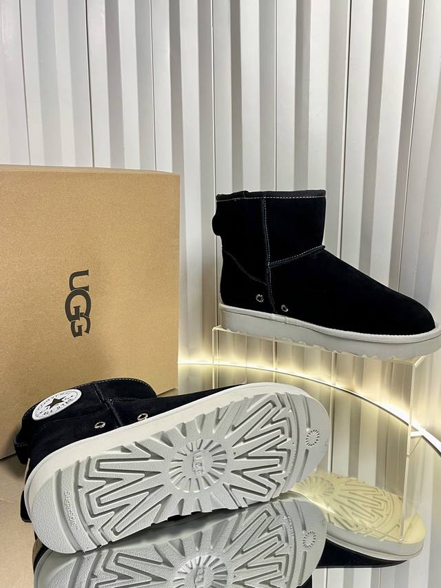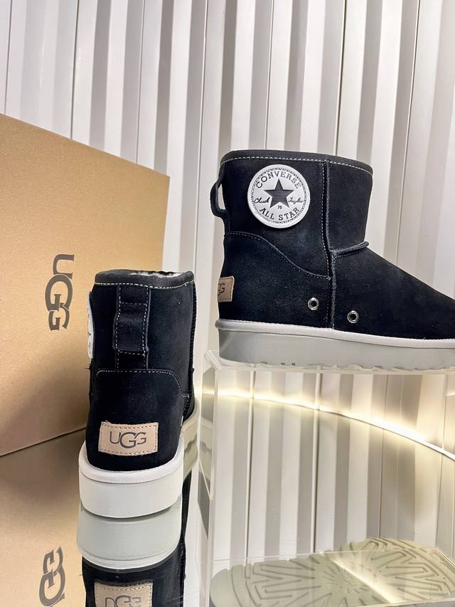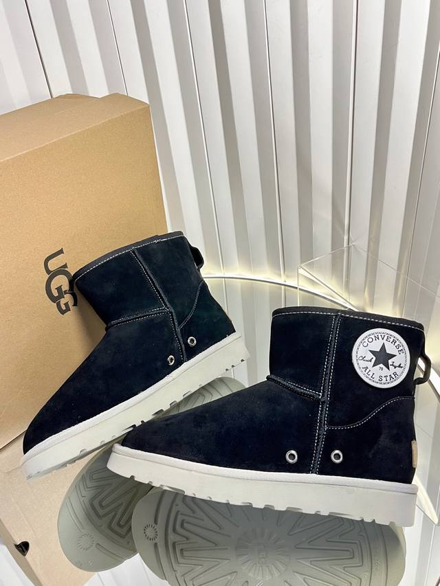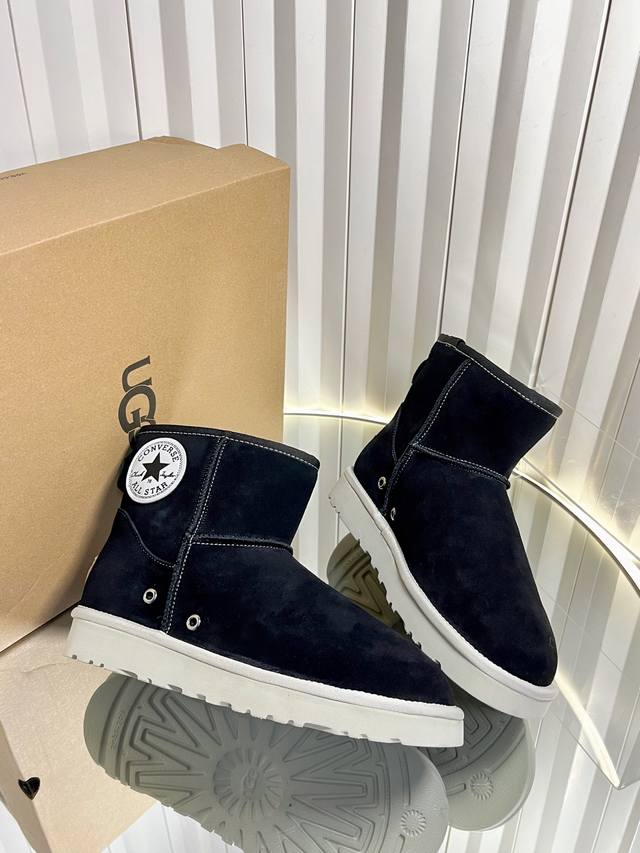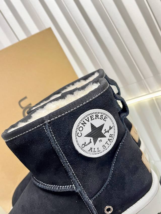 代购级 DDD 运动版 Ugg 联名 匡威 25Ss 秋冬保暖带 雪地靴 DDD 鞋面采用翻毛皮材质,内里填充羊毛,实现保暖与质感的结合。中筒靴型搭配侧边扣带设计,既提升了造型的时尚感,又可根据穿搭需求调节靴筒形态,如翻折变换风格。厚底设计兼具增高效果,适合冬季抗寒场景,能适配休闲、街头等多种穿搭风格。 DDD Ugg 以羊皮毛一体雪地靴闻名,此类带扣款式属于品牌经典产品线的延伸,既保留了“温暖舒适”的核心基因,又通过金属扣等细节增强时尚属性,常成为秋冬季节明星、潮流达人的搭配选择。 DDD 鞋面:牛反绒