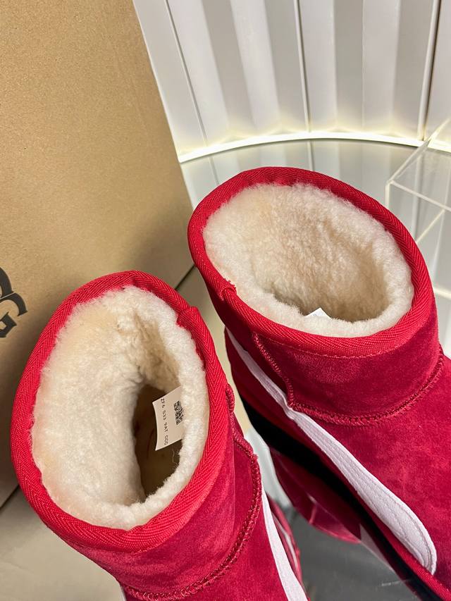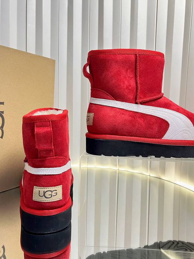 代购级 DDD 运动版 Ugg 联名 puma 25Ss 秋冬保暖带 雪地靴 DDD 鞋面采用翻毛皮材质,内里填充羊毛,实现保暖与质感的结合。中筒靴型搭配侧边扣带设计,既提升了造型的时尚感,又可根据穿搭需求调节靴筒形态,如翻折变换风格。厚底设计兼具增高效果,适合冬季抗寒场景,能适配休闲、街头等多种穿搭风格。 DDD Ugg 以羊皮毛一体雪地靴闻名,此类带扣款式属于品牌经典产品线的延伸,既保留了“温暖舒适”的核心基因,又通过金属扣等细节增强时尚属性,常成为秋冬季节明星、潮流达人的搭配选择。 DDD 鞋面:牛