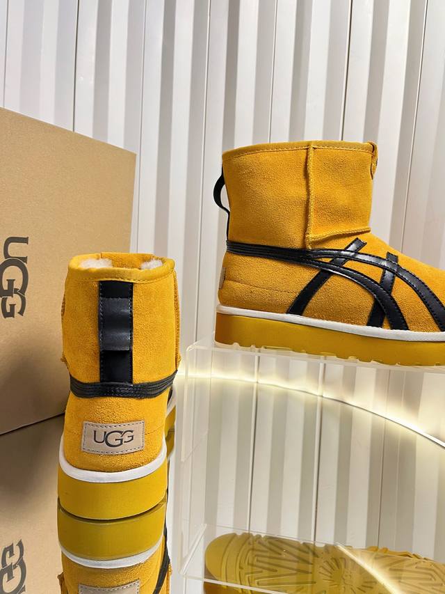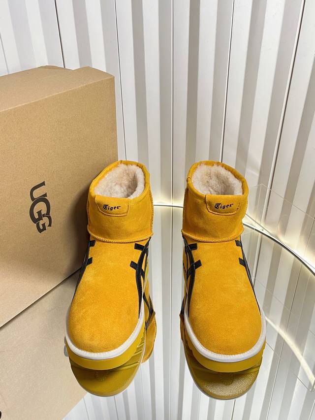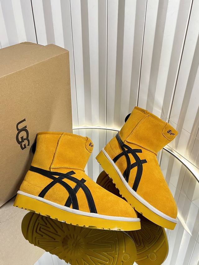 代购级 DDD 运动版Ugg 联名 Tiger 25Ss 秋冬保暖带 雪地靴 DDD 鞋面采用翻毛皮材质,内里填充羊毛,实现保暖与质感的结合。中筒靴型搭配侧边扣带设计,既提升了造型的时尚感,又可根据穿搭需求调节靴筒形态,如翻折变换风格。厚底设计兼具增高效果,适合冬季抗寒场景,能适配休闲、街头等多种穿搭风格。 DDD Ugg 以羊皮毛一体雪地靴闻名,此类带扣款式属于品牌经典产品线的延伸,既保留了“温暖舒适”的核心基因,又通过金属扣等细节增强时尚属性,常成为秋冬季节明星、潮流达人的搭配选择。 DDD 鞋面:牛