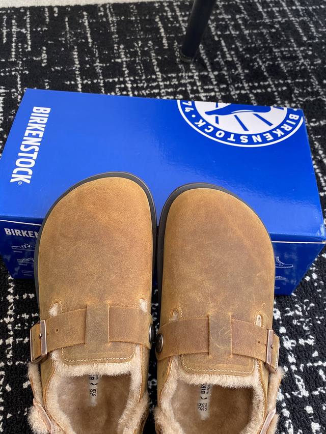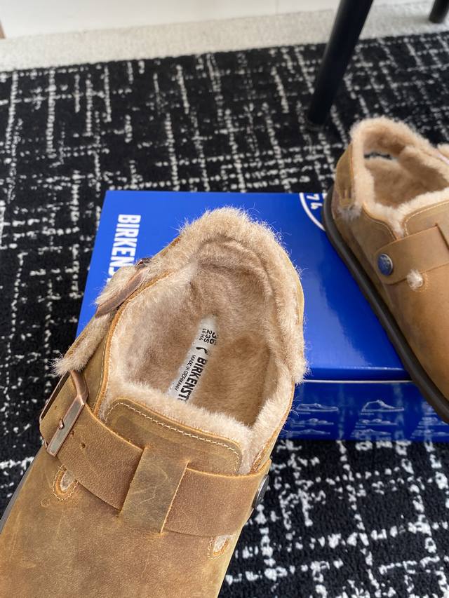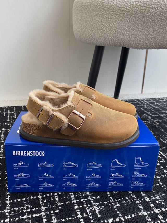 勃肯_包头 毛毛拖鞋 BIRKENSTOCK 情侣款 毛毛鞋加绒软木拖鞋外穿Arizona系列