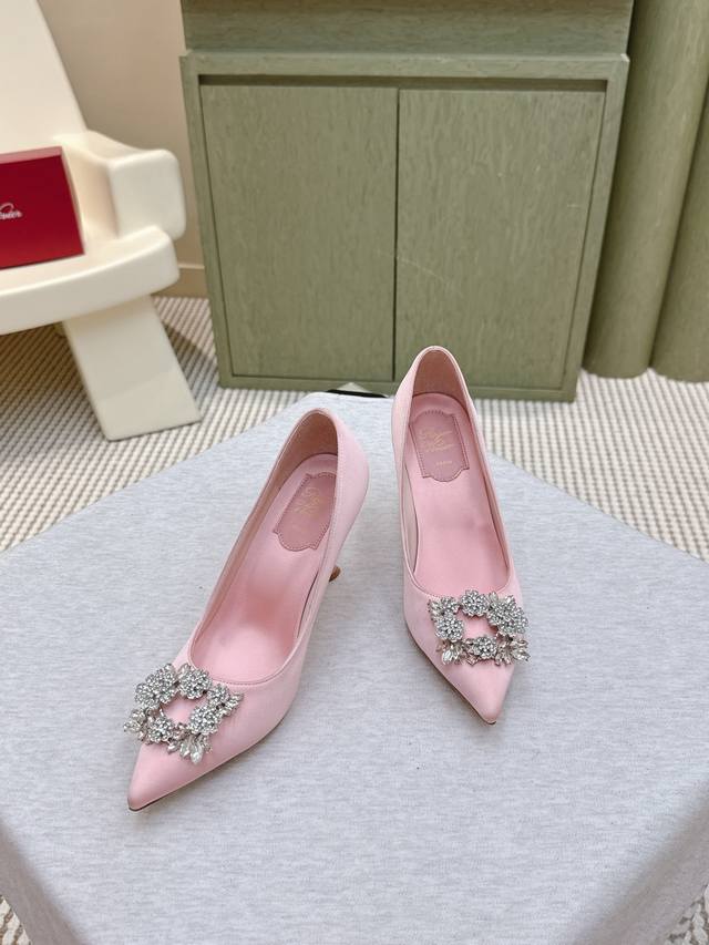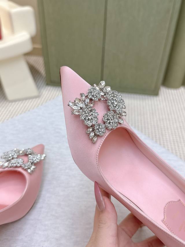 / 代购级 225专柜Jewel Heel系列新款真丝扣单鞋上新 ! ★★★★★ 气质高级的一款,新款方钻扣上脚奢华精致,高级感满满,通勤风名媛风都妥 鞋面:进口定