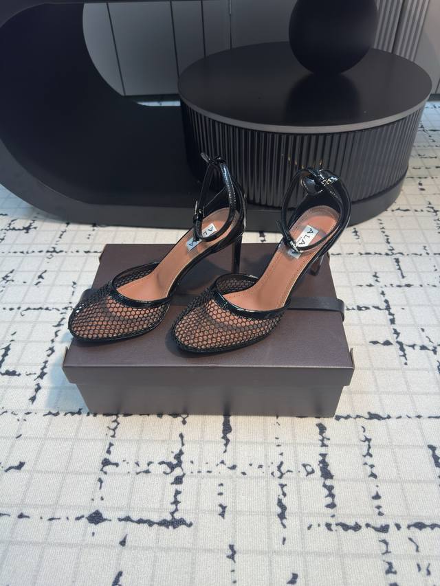 代购级 Alaia阿莱亚2025同步专柜渔网高跟鞋 爆款单品,时下流行审美。Alaia极简风太火了 所以趁着有热度,赶紧时髦一把! 跟高10Cm 瞬间Hold全
