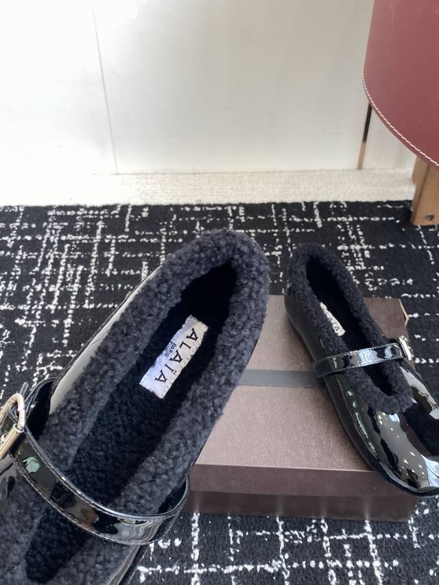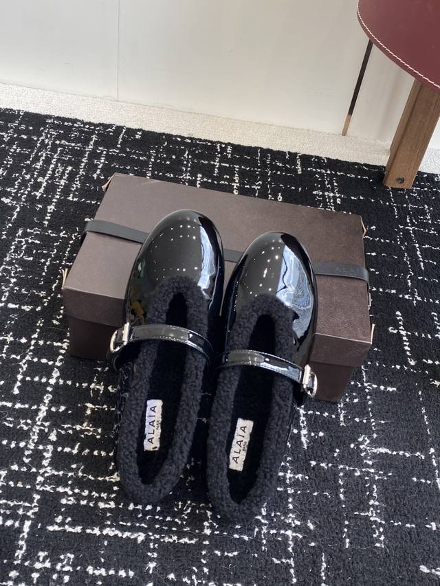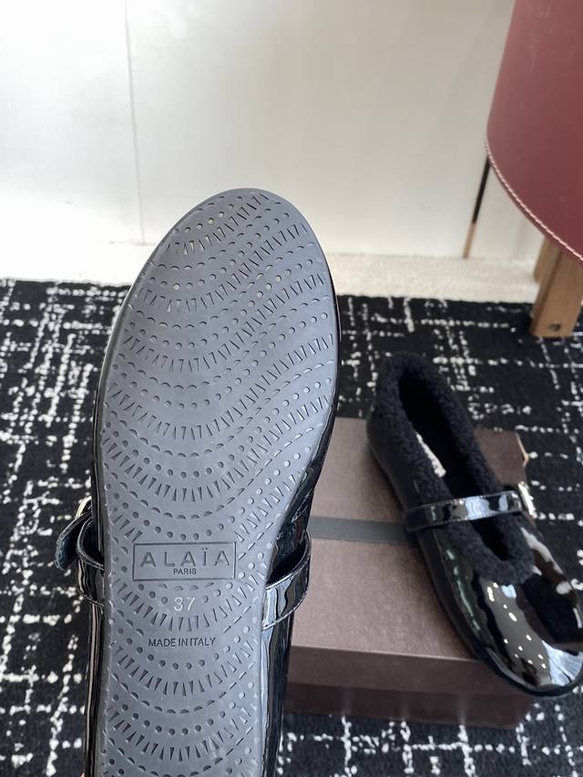 代购级 DDD Alaia 阿莱亚秋冬走秀款平底玛丽珍 羊毛单鞋 DDD 章小蕙同款 甜酷仙女风 人气超高的一款毛里平底鞋,浪漫又迷人 舒适百搭配上不同款式,不同风格都能轻松驾驭,无论牛仔裤,西装裤,还是百褶裙,都能将你的穿搭提升到时尚,优雅和卓越之中 DDD 面料:原版订制漆皮 牛皮 內里垫脚:进口羊毛 原版私模橡胶防滑大底 DDD Size:#35-41 40 41订做不退换 DDD