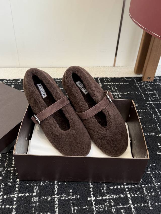 代购级 Alaia 阿莱亚秋冬走秀款平底玛丽珍 羊毛单鞋 章小蕙同款 甜酷仙女风 人气超高的一款毛里平底鞋,浪漫又迷人 舒适百搭配上不同款式,不同风格都能轻松驾