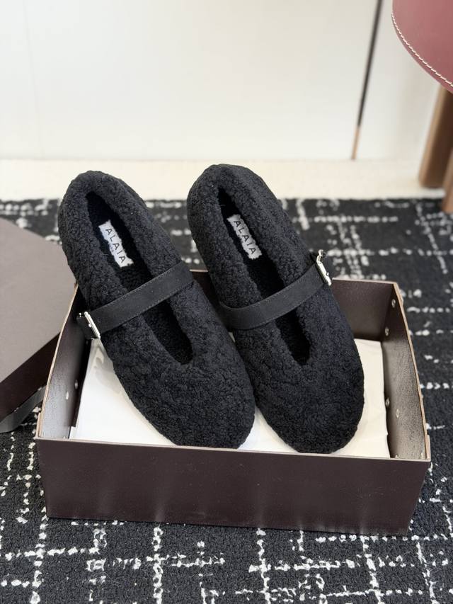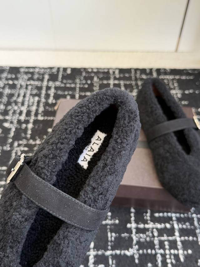 代购级 Alaia 阿莱亚秋冬走秀款平底玛丽珍 羊毛单鞋 章小蕙同款 甜酷仙女风 人气超高的一款毛里平底鞋,浪漫又迷人 舒适百搭配上不同款式,不同风格都能轻松驾