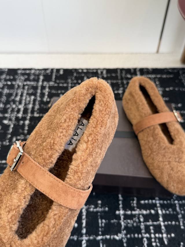 代购级 Alaia 阿莱亚秋冬走秀款平底玛丽珍 羊毛单鞋 章小蕙同款 甜酷仙女风 人气超高的一款毛里平底鞋,浪漫又迷人 舒适百搭配上不同款式,不同风格都能轻松驾