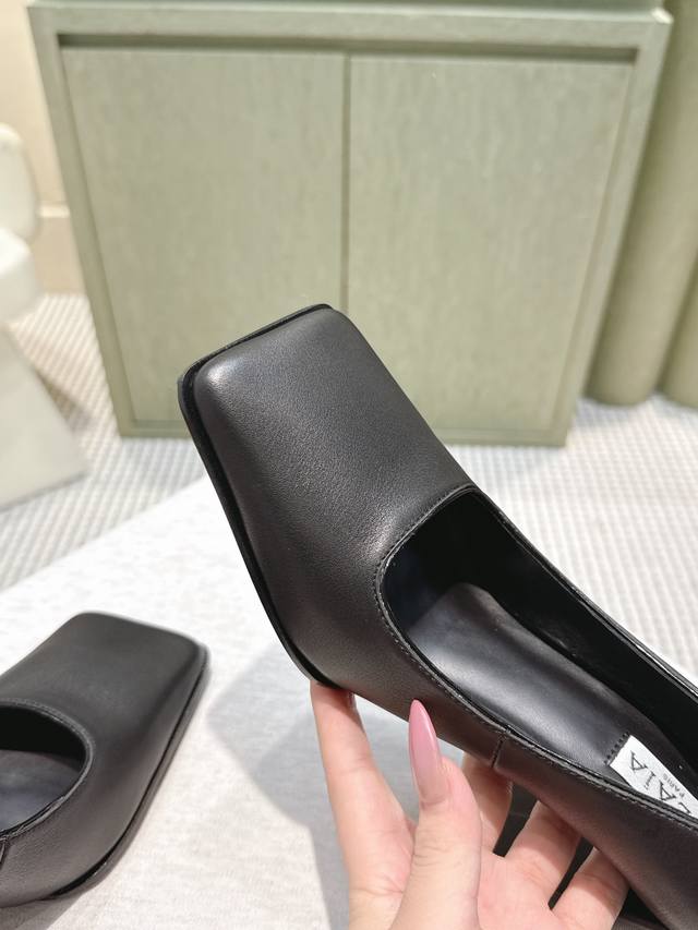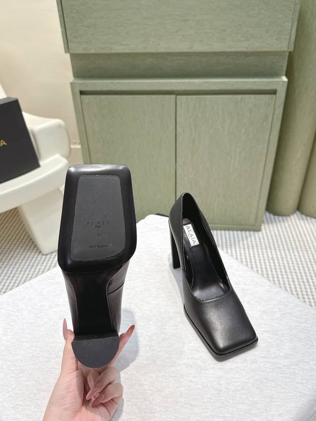 代购级 Alaia 阿莱亚25Ss 秋冬简易时髦精粗跟方头凉鞋 时尚达人都在寻觅一双能兼顾舒适与风格的单鞋 而这双无疑是这个季节的最佳答案! 搭配简约的直筒牛仔