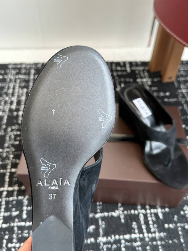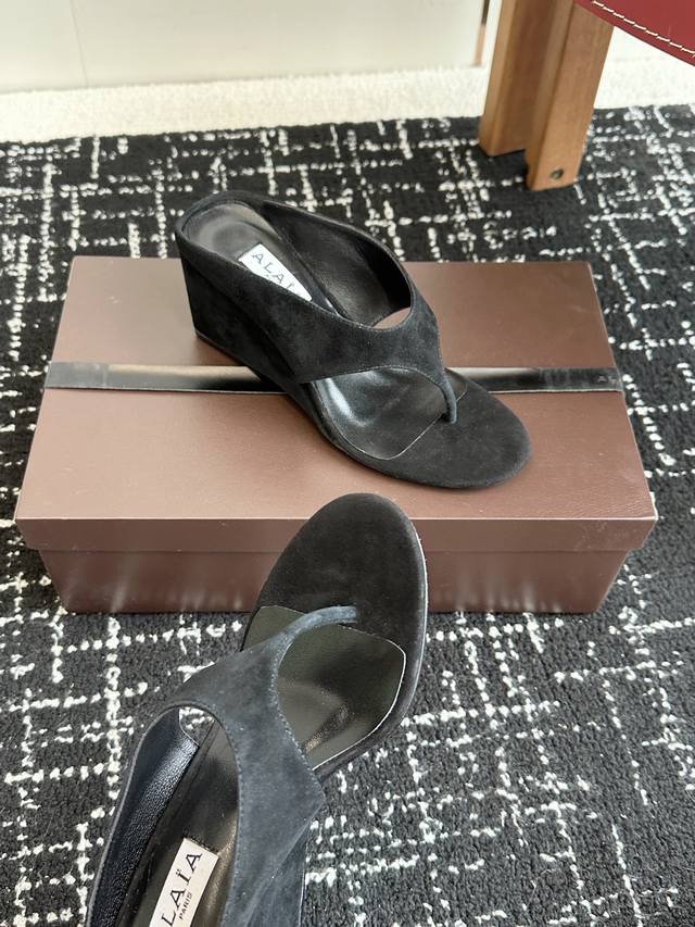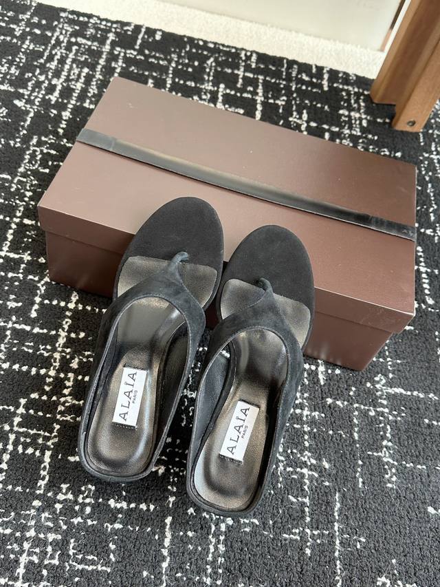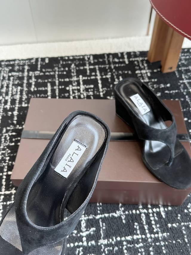 代购级 Alaia 25Ss 春夏新品简易 坡跟夹脚 拖鞋异形跟穆勒鞋 不对称设计打破常规 释放独特气场 尖头勾勒利落线条 轻松游走于时尚前沿 每一步都踏出摩登态度 !鞋面采用进口牛反绒 内里垫脚进口羊皮 意大利进口真皮大底Size:35-41 40 41定做不退换