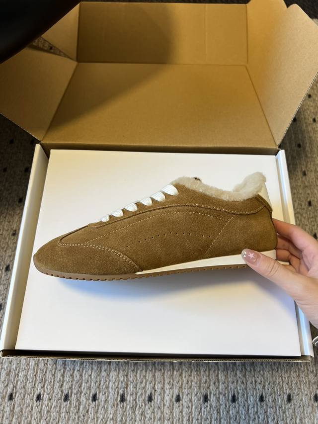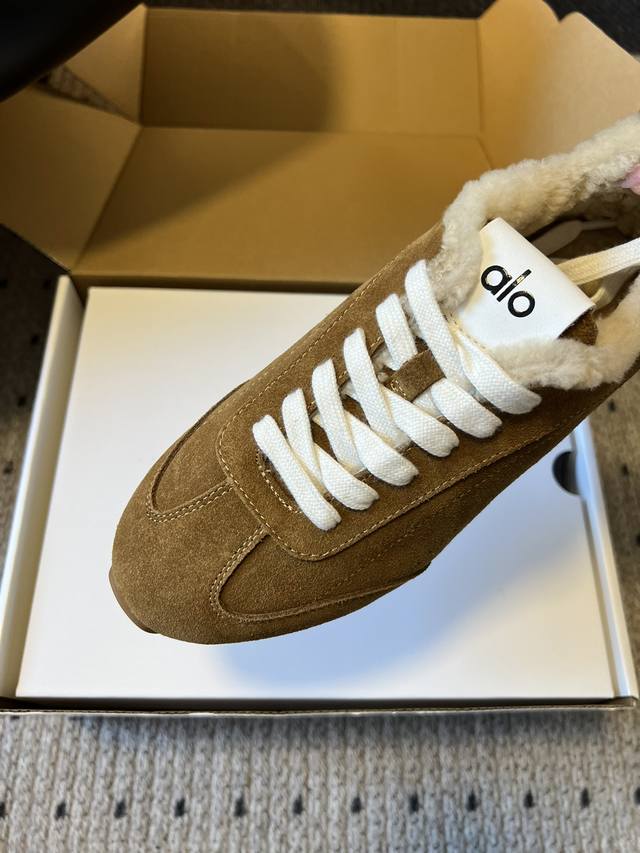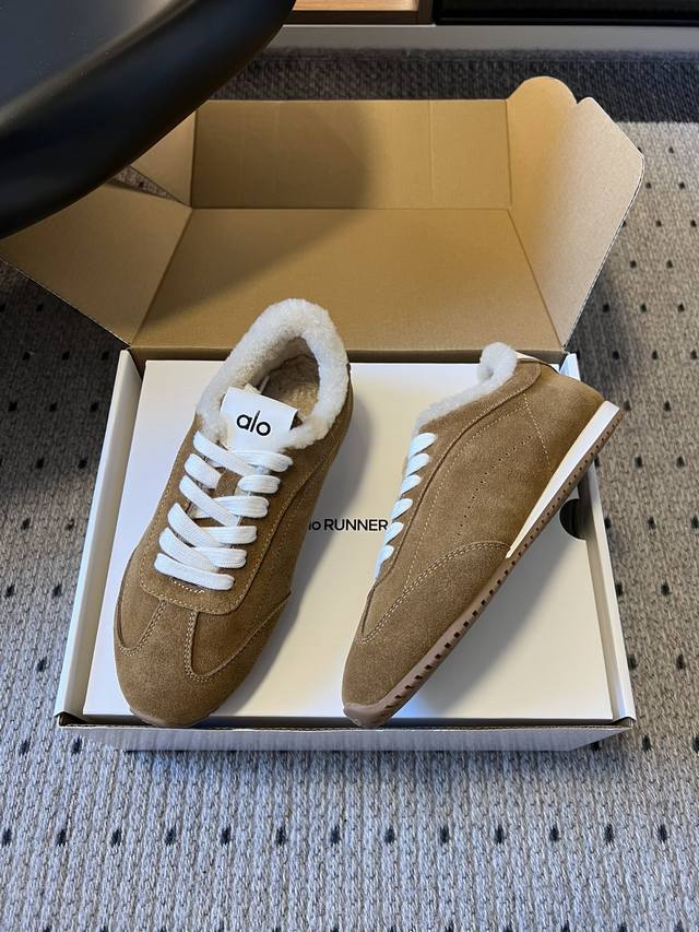代购级 Alo 25Ss 新品复古加绒休闲运动鞋 DDD 鞋面采用麂皮质感的面料,触感柔软且富有高级感;鞋口内侧添加毛绒衬里,既提升保暖性,又增添了温柔的视觉层次。提供米白、浅棕、深棕等低饱和度大地色系,简约百搭,能适配多种秋冬穿搭风格。 DDD 延续复古运动鞋的轮廓,搭配白色系带设计,弱化了运动感的同时,强化了休闲随性的氛围,鞋舌处的品牌标识也让整体更具辨识度。 DDD 材质:牛反绒 DDD 内里:羊毛 DDD 大底:橡胶大底 DDD 增高:4Cm DDD Size:35-45码 40-45码定制不退换