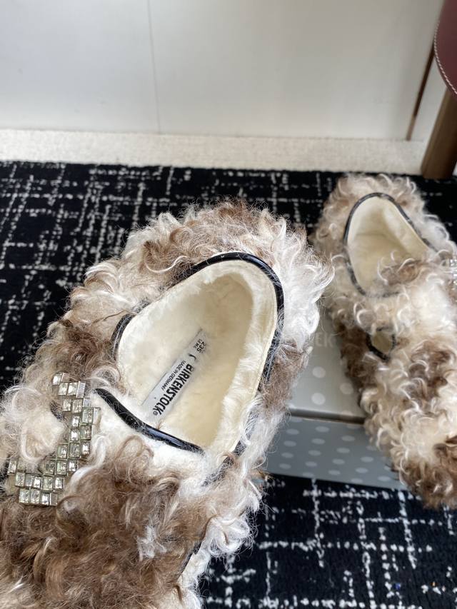 代购级 Birkenstock 25Ss秋冬 羊毛 潮流时尚 钻扣 休闲鞋 人体工程学设计符合脚形的脚床,软木材质穿着超级轻便舒适,楦形线条优美,做工精致,长时