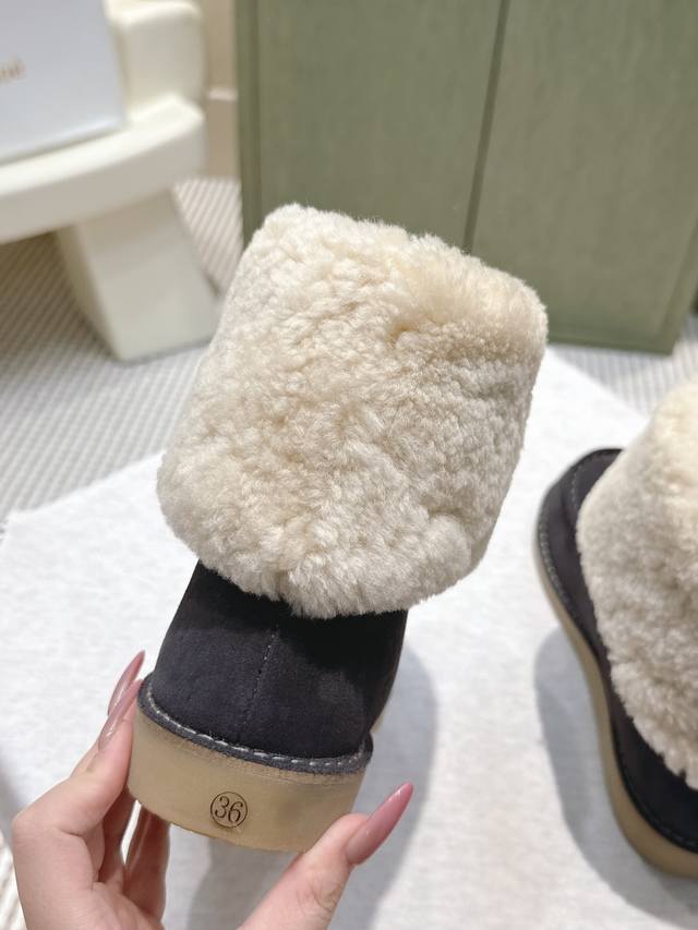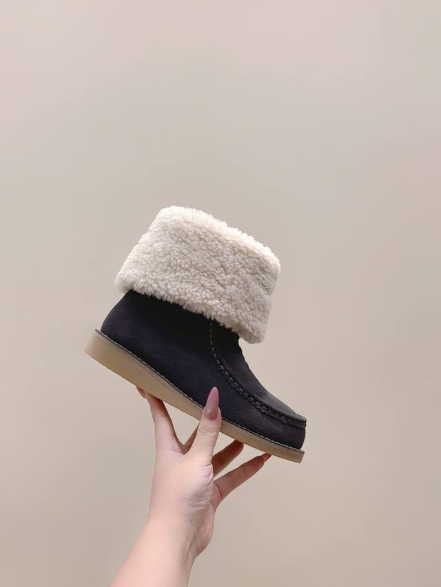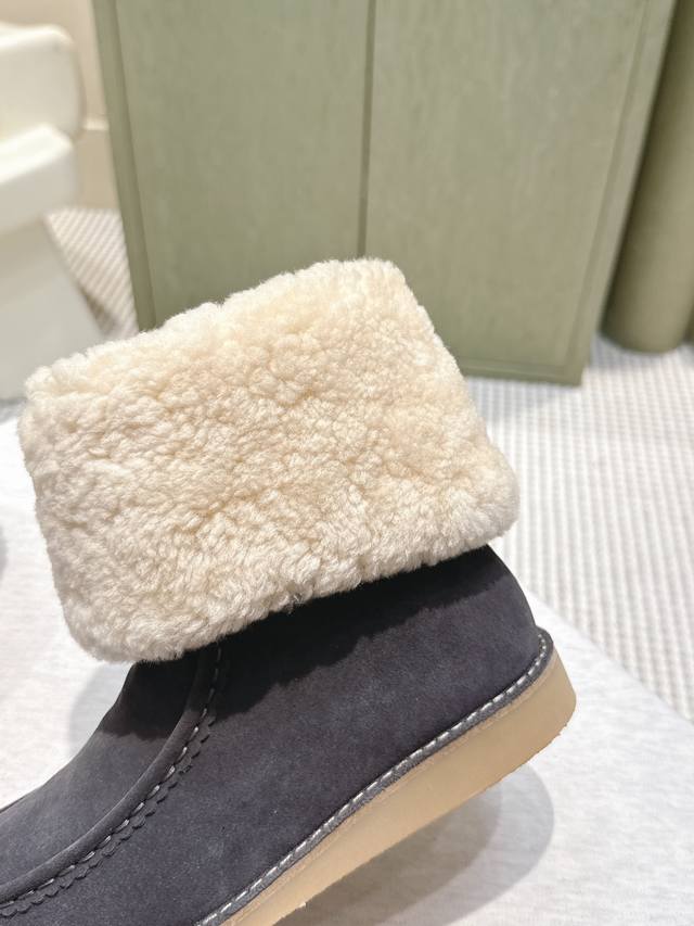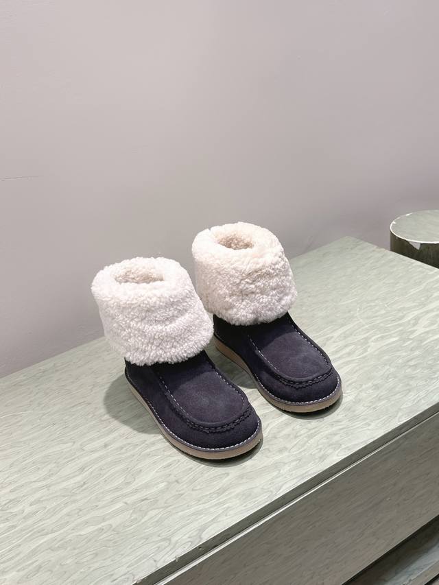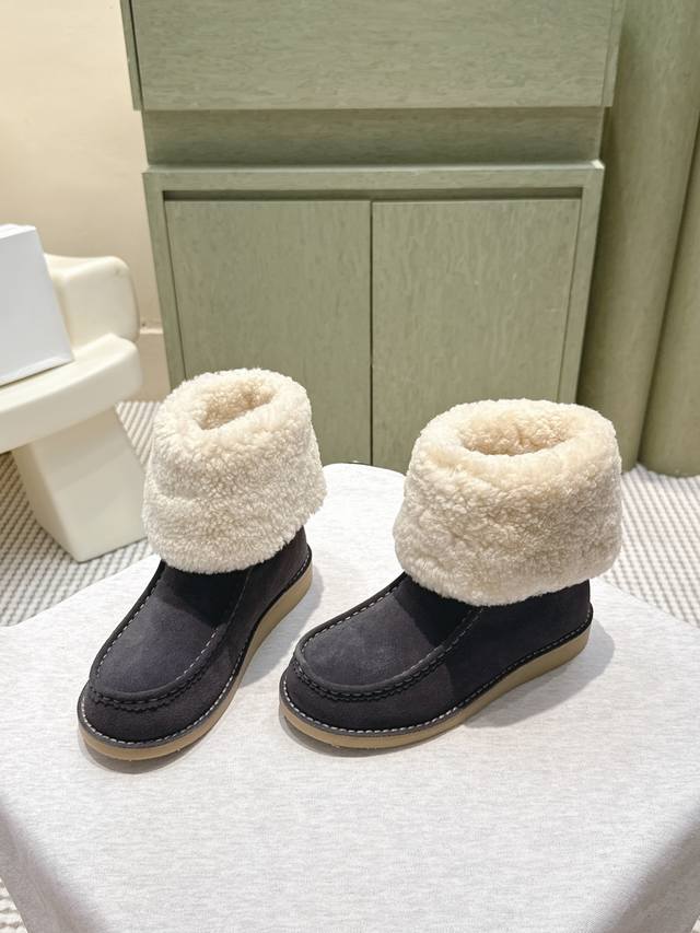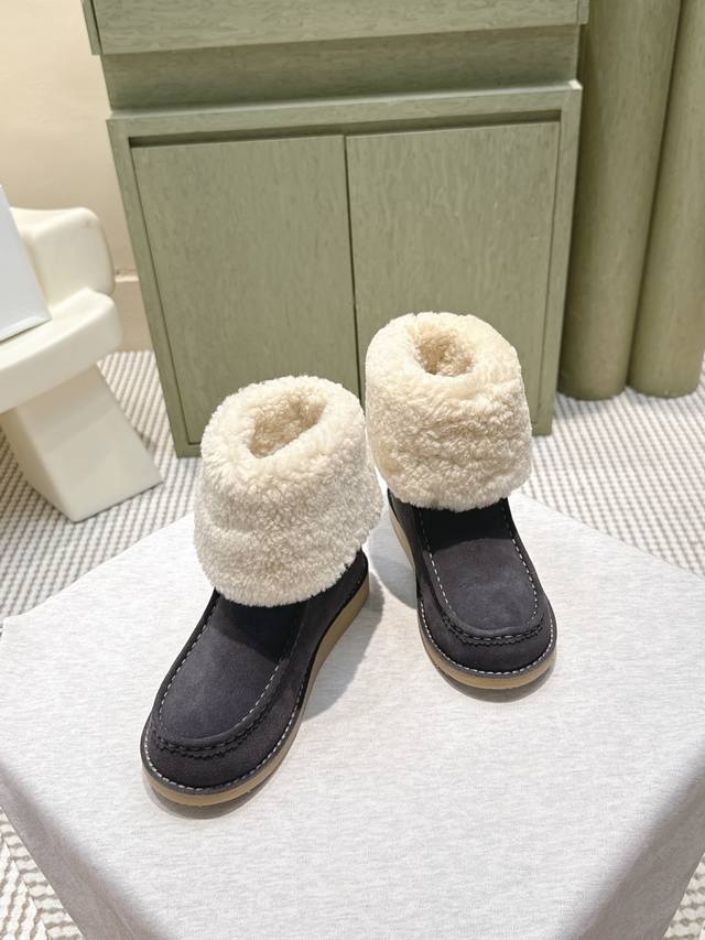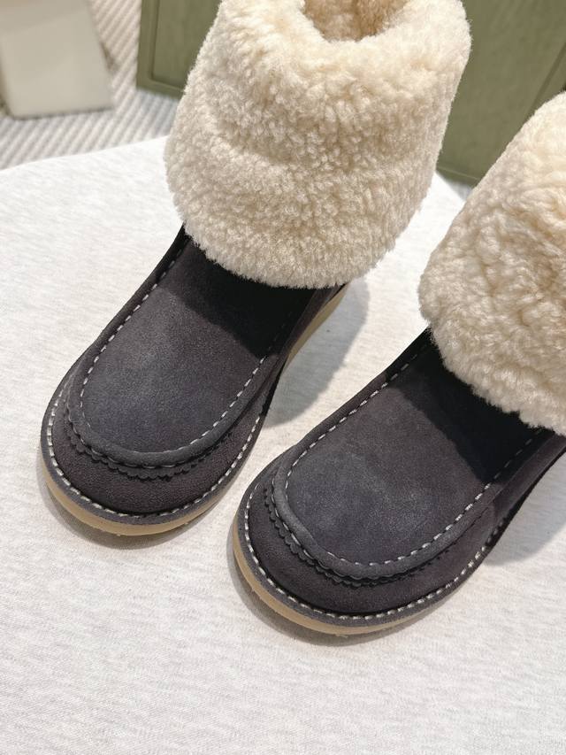 代购级 Chloé 蔻依 2025S秋冬羊羔毛雪地靴 进口牛反绒+真羊毛内里,质感细腻又透气,穿着超舒适厚实羊羔毛翻领,保暖力满分,生胶鞋底防滑耐磨,日常通勤或