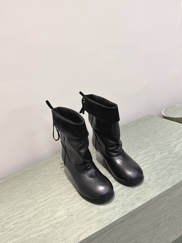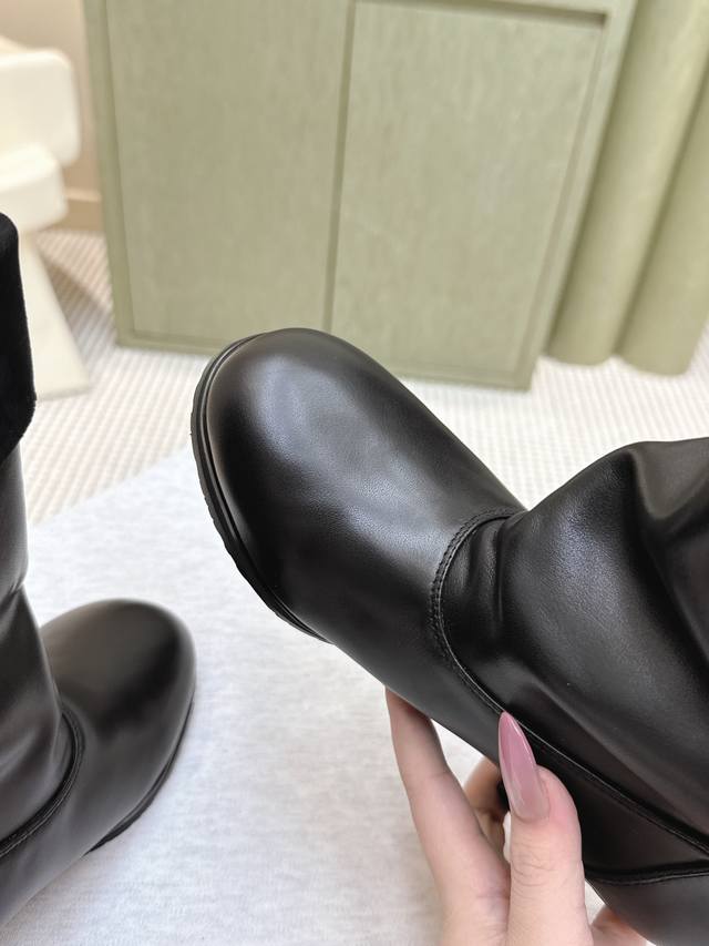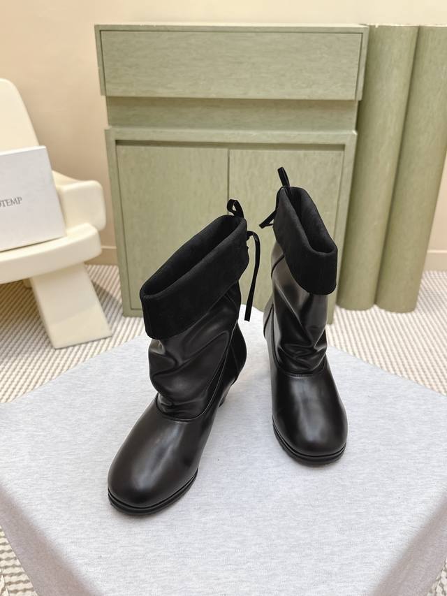代购级 Cotemp Winfair 25 Aw 圆头褶皱靴 细纹牛皮呈现细腻均匀的光泽。靴筒内外拼皮设计,展现柔软层次的碰撞。延续 Cotemp设计开发的 Regalo 精巧圆润鞋头,鞋面由细纹牛皮覆盖,靴筒比例加宽,柔软可堆叠自带慵懒气质 呈现秋冬中性利落的摩登风格 面料:牛皮 内里:羊皮 鞋底:橡胶大底 码数:35-41 40、41定做不退不换