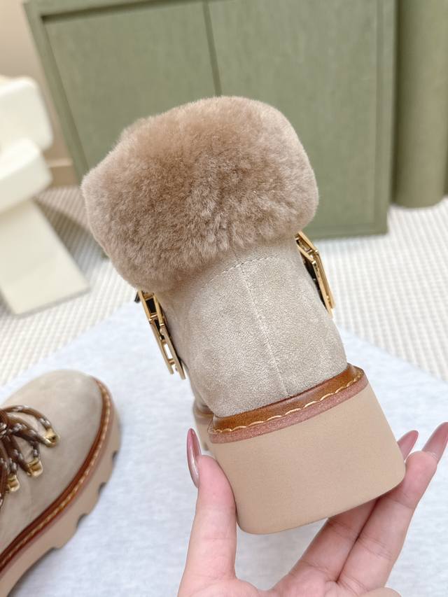 代购级 |D1139 225 专柜新款雪花扣羊毛保暖短靴上新 ★★★★★ 认准代购级别顶货!台资工厂P出品! 鞋面:原版定制小牛漆皮配原版开模饰扣 闪亮施华洛钻