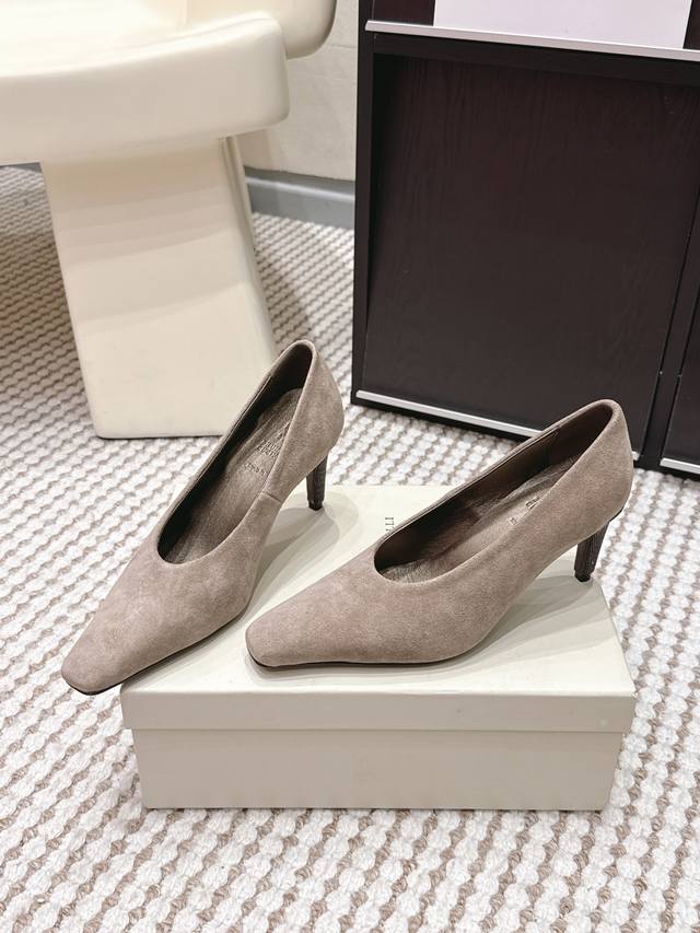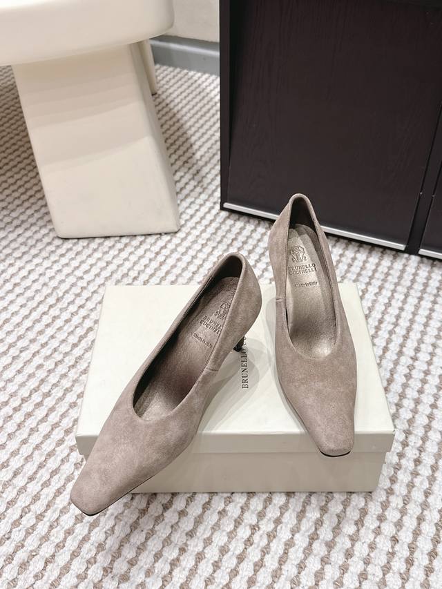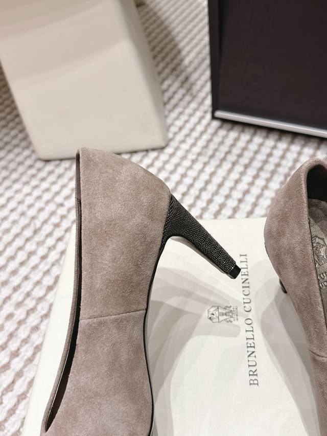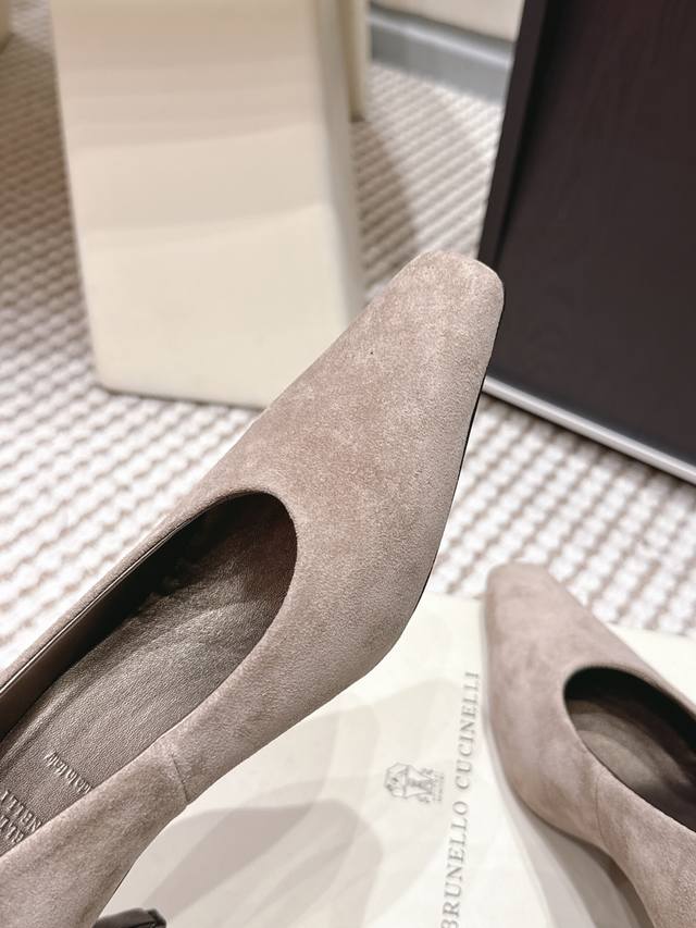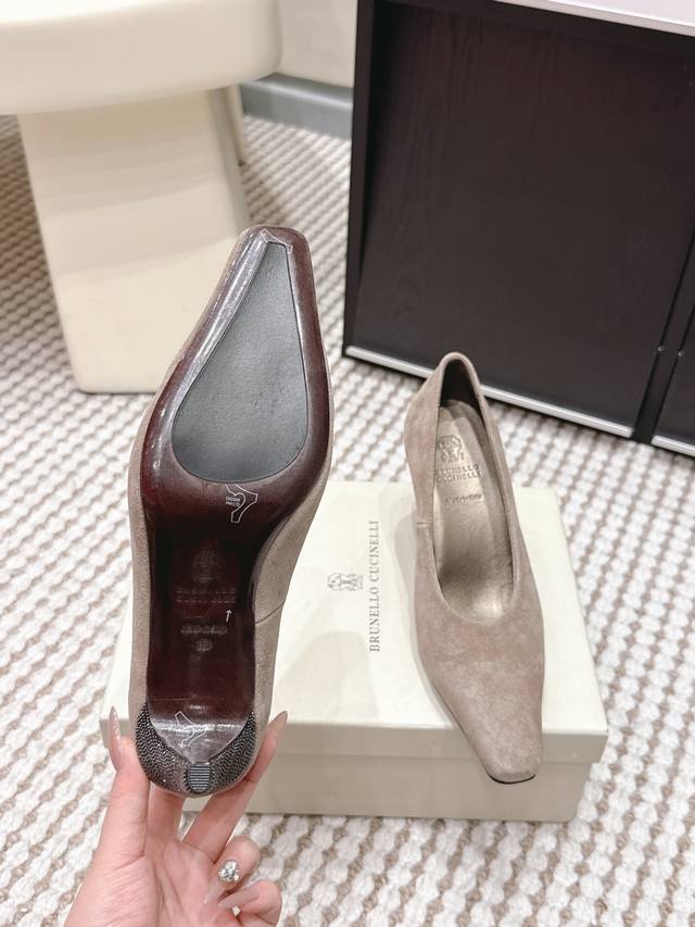 FFF 代购级 DDD Brunello Cucinelli 2026春夏新款 鹿皮 高跟鞋 单鞋 DDD 意大利奢侈品牌Brunello Cucinelli的鹿皮高跟鞋,选用优质鹿皮,柔软细腻,深棕色调超有质感。尖头浅口设计,优雅又显腿长,低跟舒适,通勤或正式场合都能轻松驾驭 DDD 低调奢华风格,搭配裙装或西装裤都很出彩,轻松提升整体气质,是都市女性衣橱必备单品 DDD 跟高 :8Cm DDD Size :35-39 40.41.42定做不退换 DDD
