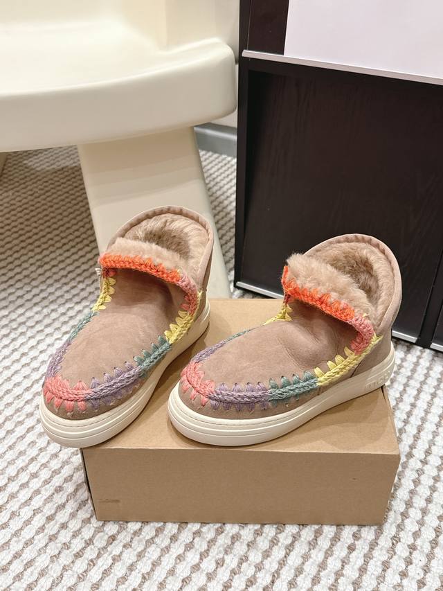 代购级 DDD Mou Fw25 New Arrival~ Mou2025秋冬新品雪地靴 DDD 麂皮鞋面,重工民族风手工衍边! DDD 皮毛一体材质内里,功能