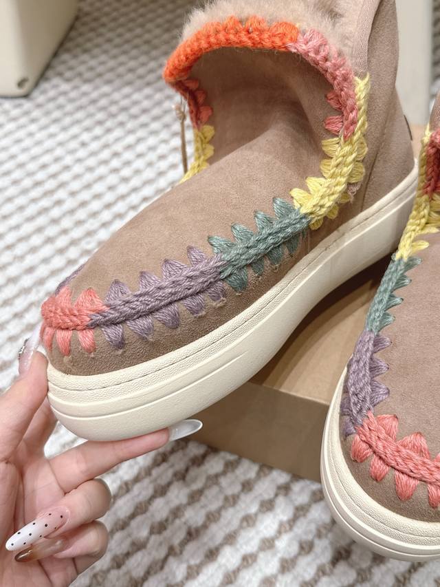 / 代购级 DDD Mou Fw25 New Arrival~ Mou2025秋冬新品雪地靴 DDD 麂皮鞋面,重工民族风手工衍边! DDD 皮毛一体材质内里,功能