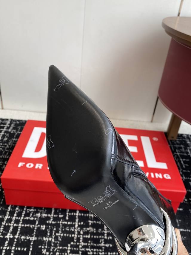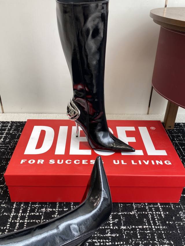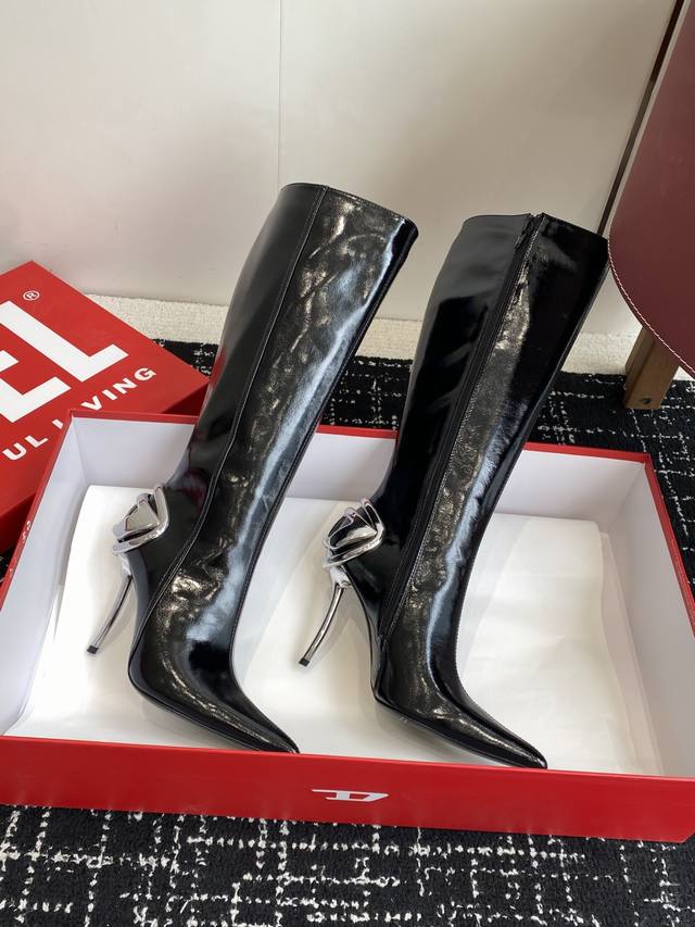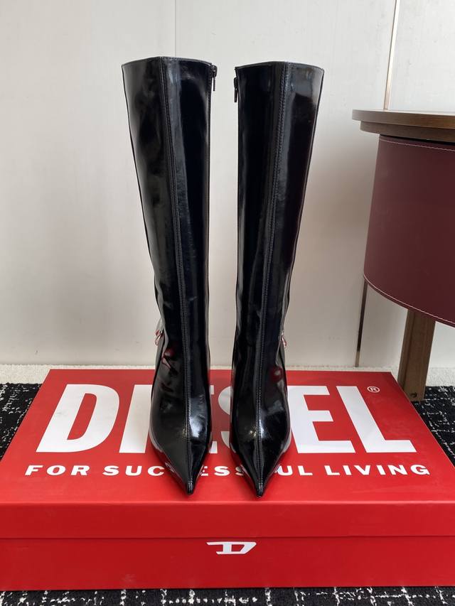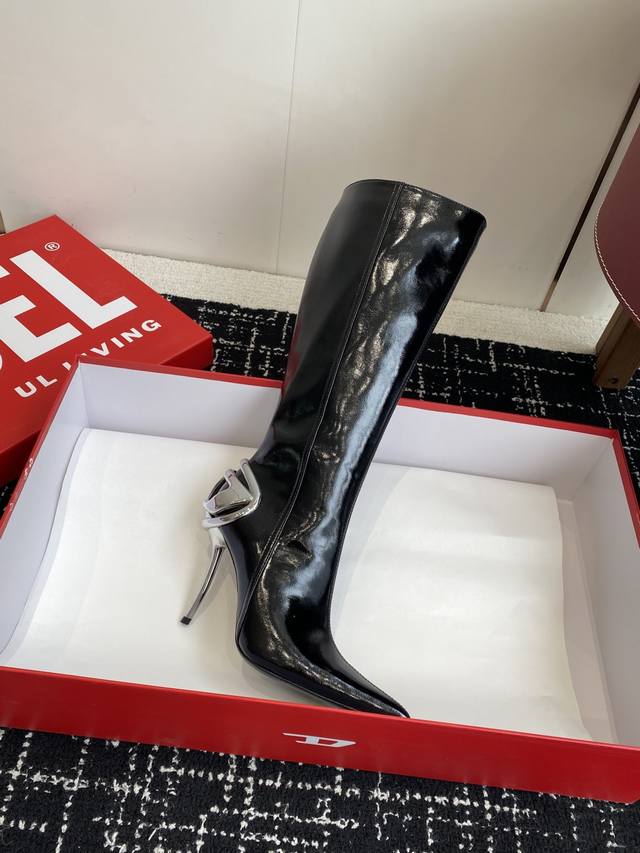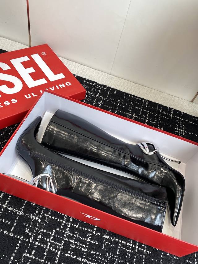 代购级 DDD Diesel 25S 秋冬经典高跟高筒长靴 DDD 超高品质原版开发、无论是楦型、线条、细节、一点一滴都与原版零差距、只追求完美、拉链设计便于穿脱 高跟新元素已是今年的主流趋势.线条流畅立体 上脚十分显瘦拉长双腿的效果. 非常性感、让你轻松搭配尽显各种风格! DDD 靴面采用进口牛油皮 进口漆皮 内里垫脚是小羊皮 意大利进口真皮大底 DDD 跟高:10Cm DDD Size:35-42 40 41 42订做不退换 DDD