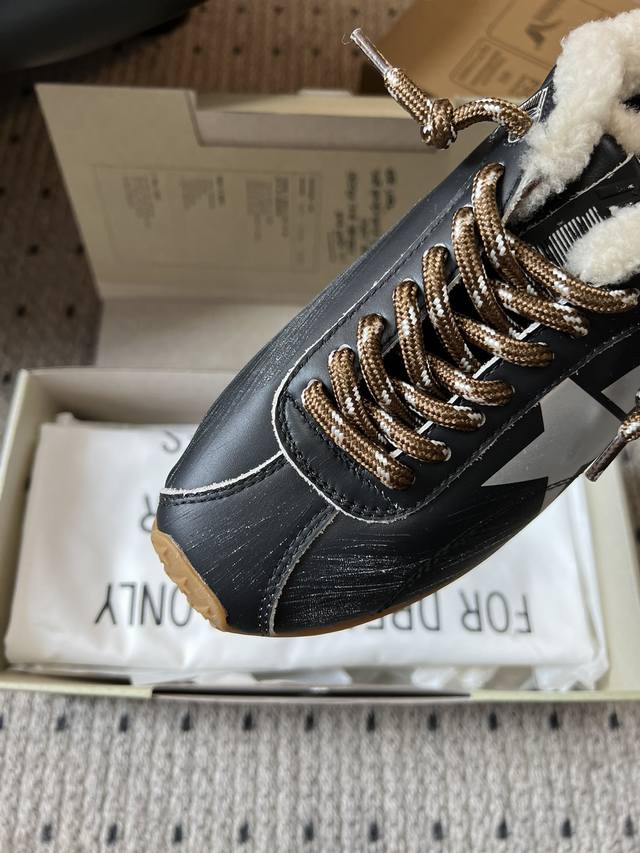 代购级 Ggdb Golden Goos* 25Ss复古做旧风加绒休闲鞋 DDD 采用做旧复古风格,鞋身带有刻意的磨损痕迹,呈现出独特的复古质感。融入德训鞋、阿甘鞋的设计元素,兼具复古与运动休闲风格。款式采用加绒设计,鞋口处的毛绒材质增加了保暖性,适合秋冬季节穿着。鞋底为薄底设计,兼具舒适性与休闲感。 DDD 鞋侧有星星装饰,是其标志性设计元素之一,增加了鞋子的辨识度。有豹纹、黑色、卡其色等多种配色可选,其中豹纹款极具时尚感,黑色和卡其色则更显百搭。 DDD 鞋面:牛皮 牛反绒 DDD 内里:羊毛 DDD