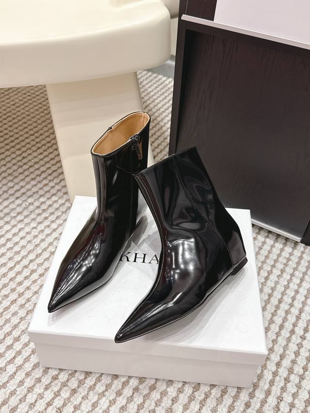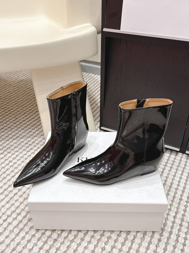 代购级 Ddd Hidem* 新品 DDD 尖头靴|把酷飒高级焊在腿上 DDD 当漆皮质感撞上先锋方头 这双靴直接改写秋冬时髦规则 利落拉链+个性鞋型 黑得纯粹又亮得吸睛 每一步都在释放“生人勿近”的高级气场 Hidemi的设计巧思 让你轻松拿捏小众酷感 从此穿搭不再平庸 DDD 鞋面进口.羊京 牛皮. 内里进口羊皮 Zp开模大底 DDD Size :35-39 40.41定 DDD