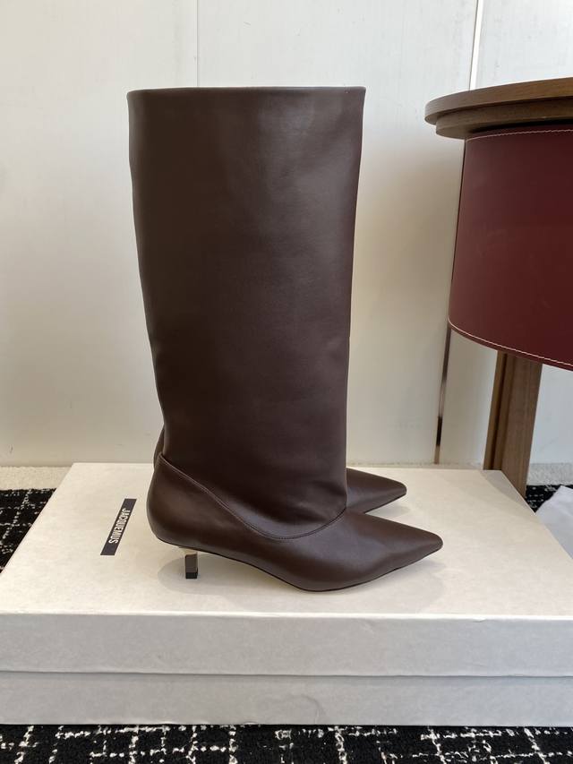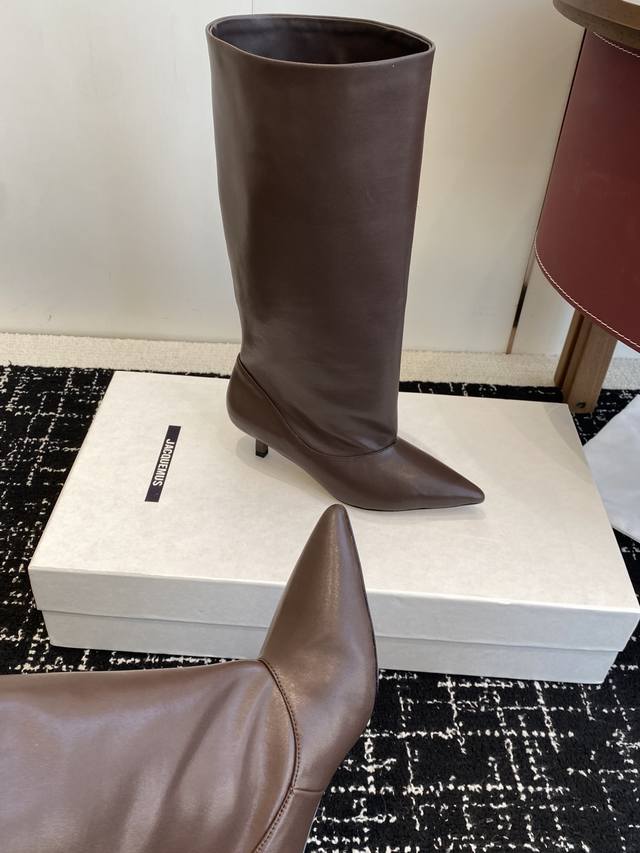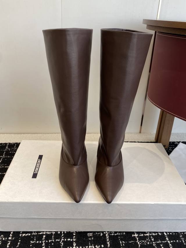 代购级 Jacquemus 25Ss 秋冬 新品靴 黑色长靴界的“时髦尖子生” 利落尖头+小猫跟 大靴筒太鲨我 气场直接拉满 走哪都是焦点~ 鞋面:进口麂皮.牛