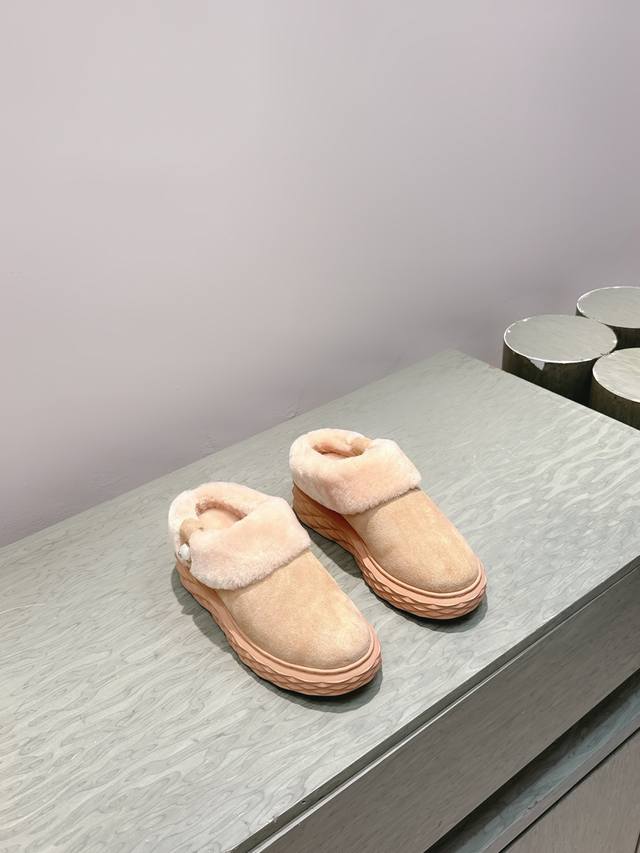 / 代购级 Jimmychoo周仰杰2025S秋冬新款厚底坡跟毛拖 这款拖鞋采用皮毛一体设计,鞋面柔软皮革,内里厚实毛绒,保暖力满分。橡胶鞋底防滑,秋冬室内或短途外