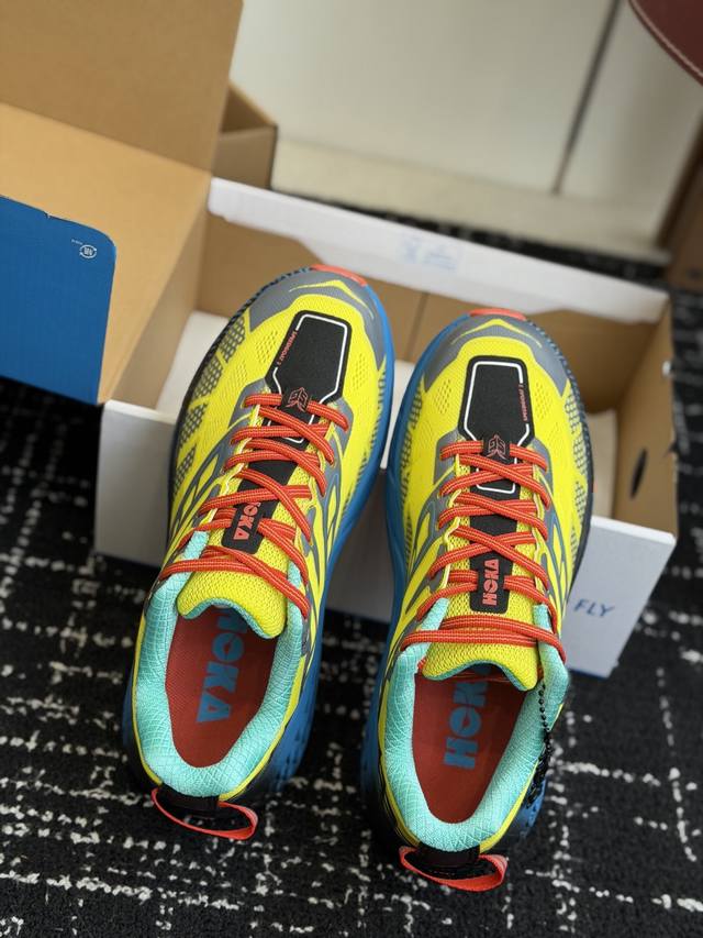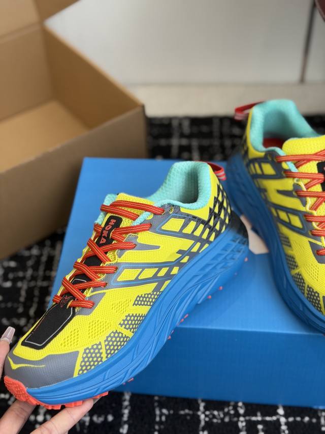 代购级 K Hoka Mafate Speed 2 超轻厚底轻量山地跑步鞋 原装轻量化材料Fresh Foam 超轻量中底全部用料过3C认证滚动平衡科技减少33