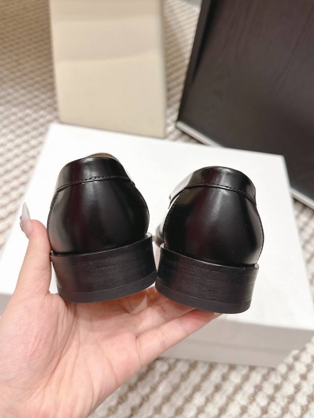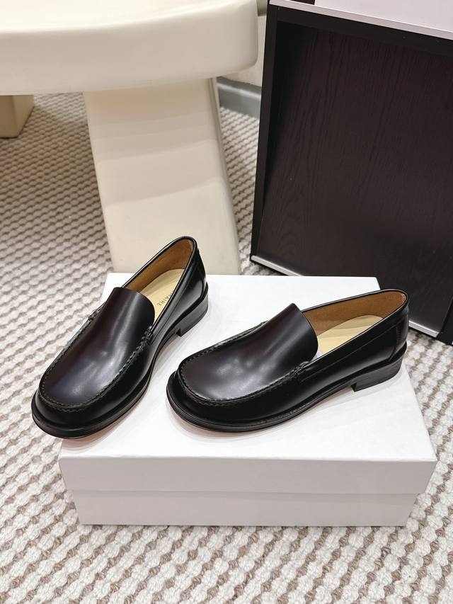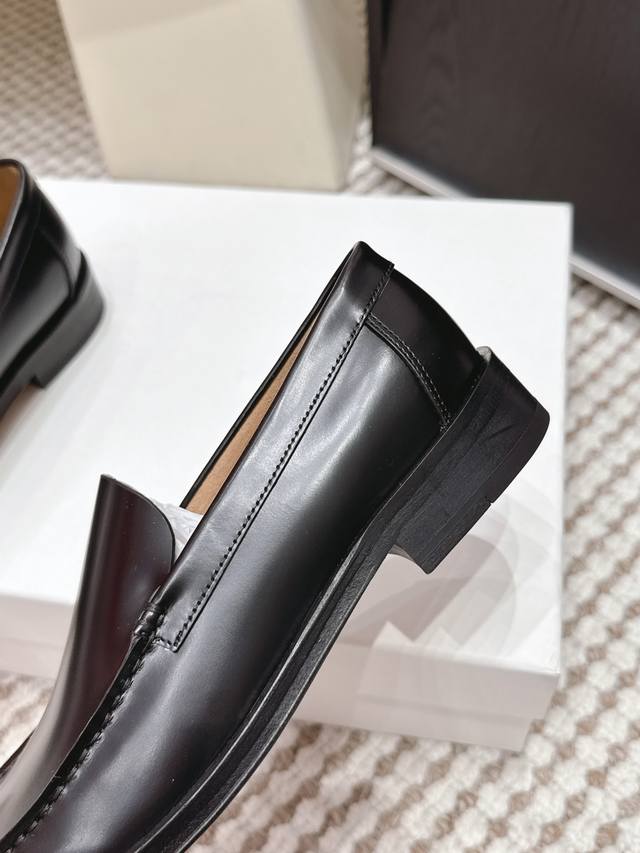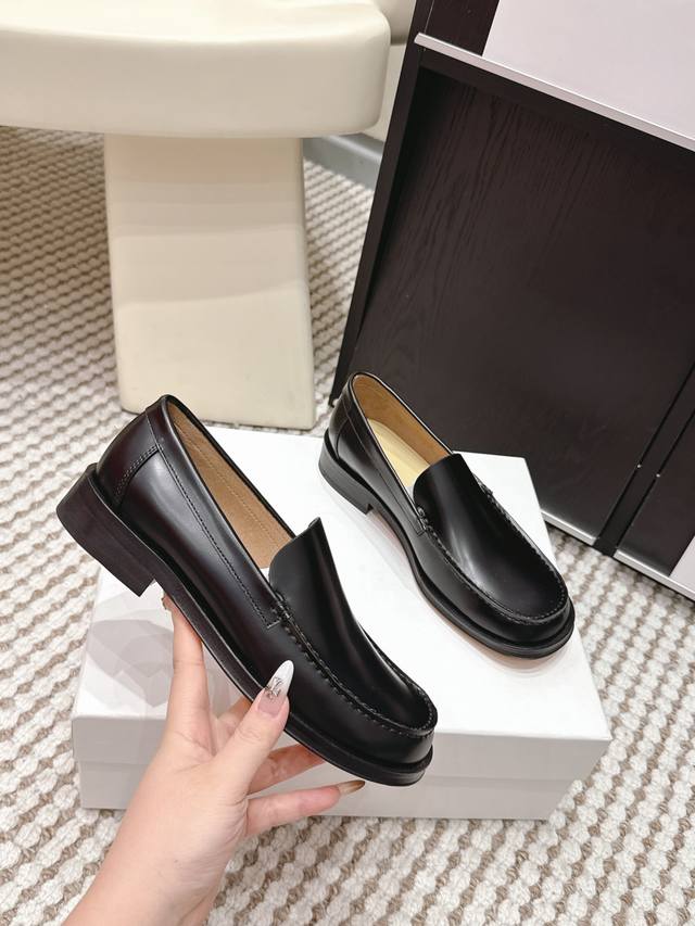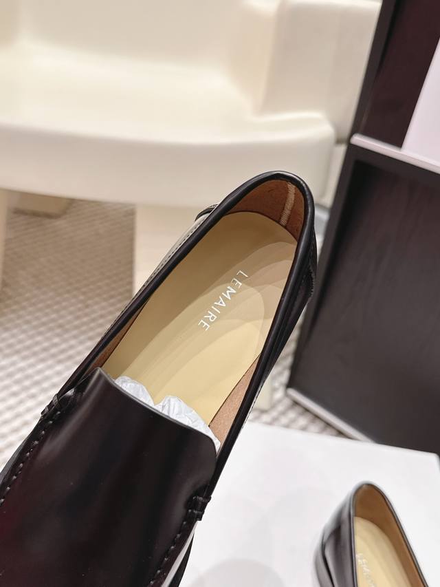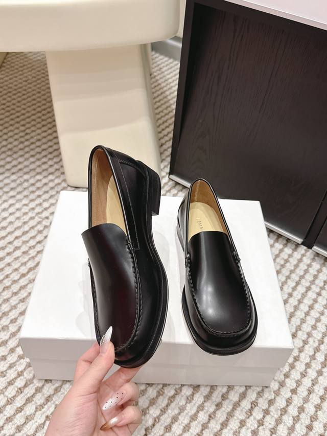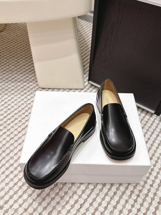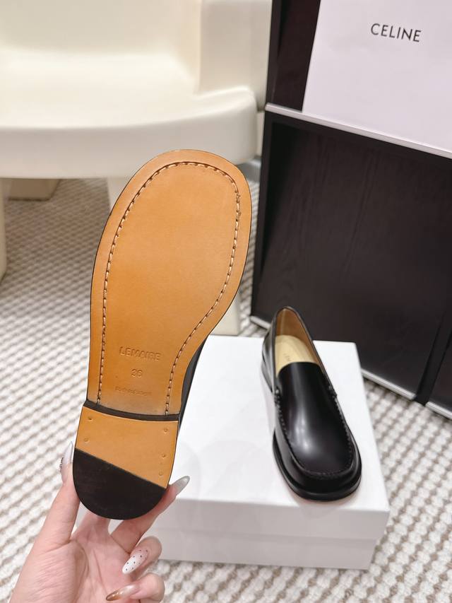 代购级 Ddd Lemair* 26S 极简风皮革 方圆头乐福鞋 休闲鞋 DDD 延续Lemaire极简主义的设计内核,整体无繁杂装饰,主打简约高级的法式慵懒风,符合品牌标志性的低调质感。鞋面采用亮面皮革材质,质感细腻且带有光泽感,鞋边的包边工艺精致,黑白撞色的鞋底 鞋沿设计,强化了视觉层次;内里是浅色系衬里,提升穿着舒适度。 DDD 鞋头为圆润的椭圆头设计,贴合脚型且不挤脚;平底的乐福鞋版型,无鞋带、无扣饰的一脚蹬设计,穿脱便捷,日常搭配的适配性极强。推出温柔的浅粉色与经典的黑色两款,浅粉色打破乐福鞋的