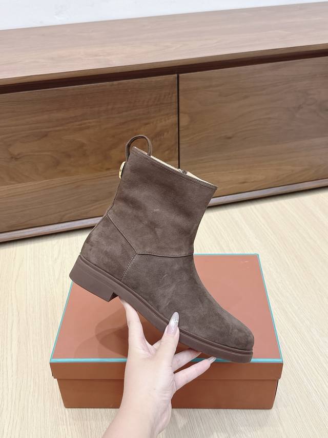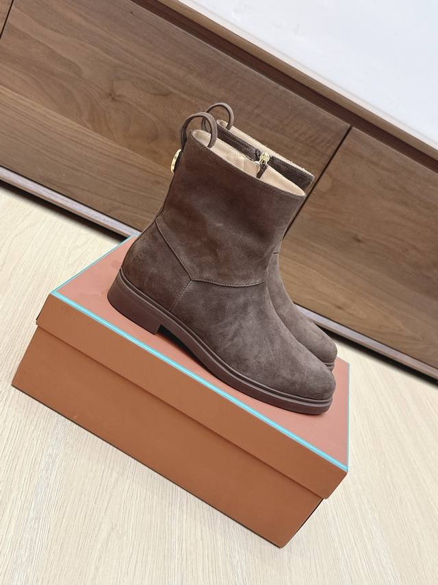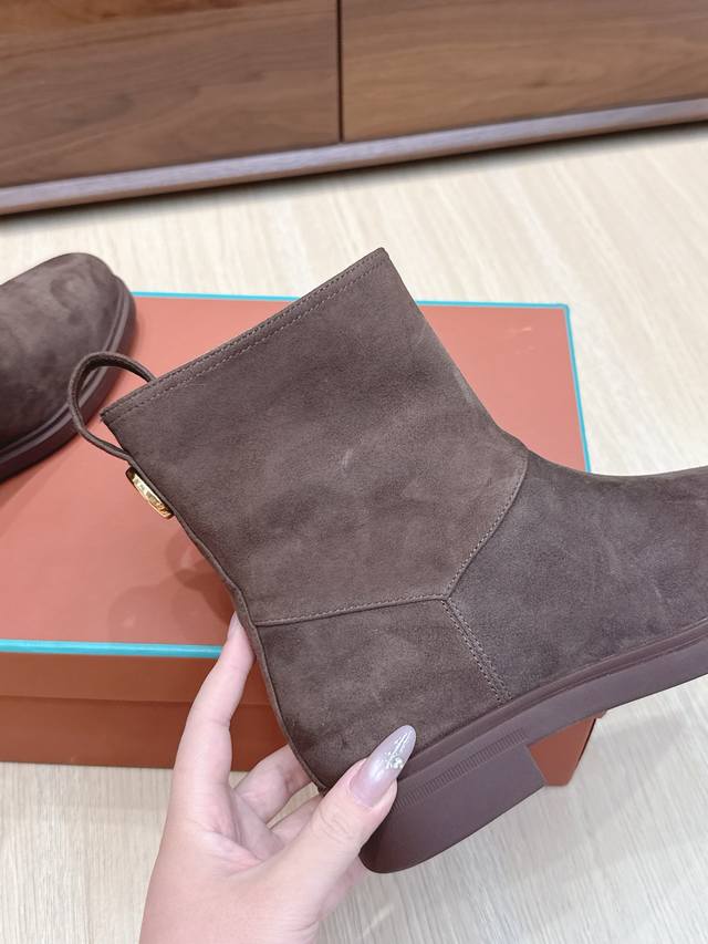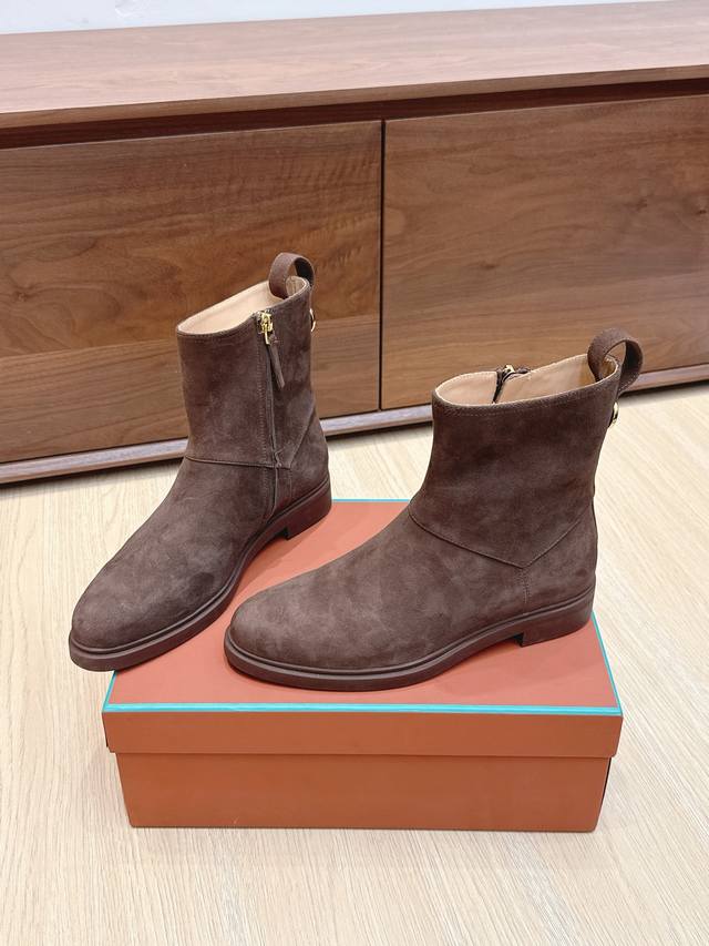 / 代购级 Loro pian*25S春夏新款 极简复古侧拉链平底短靴 非常极简复古的款式,鞋面整体就是哑光牛皮面的简单制作,只有纯粹的牛皮质感,唯有靴筒上多了圆环
