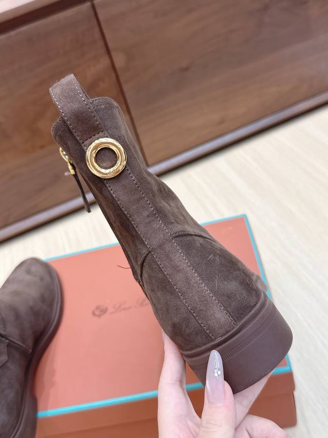 代购级 Loro pian*25S春夏新款 极简复古侧拉链平底短靴 非常极简复古的款式,鞋面整体就是哑光牛皮面的简单制作,只有纯粹的牛皮质感,唯有靴筒上多了圆环