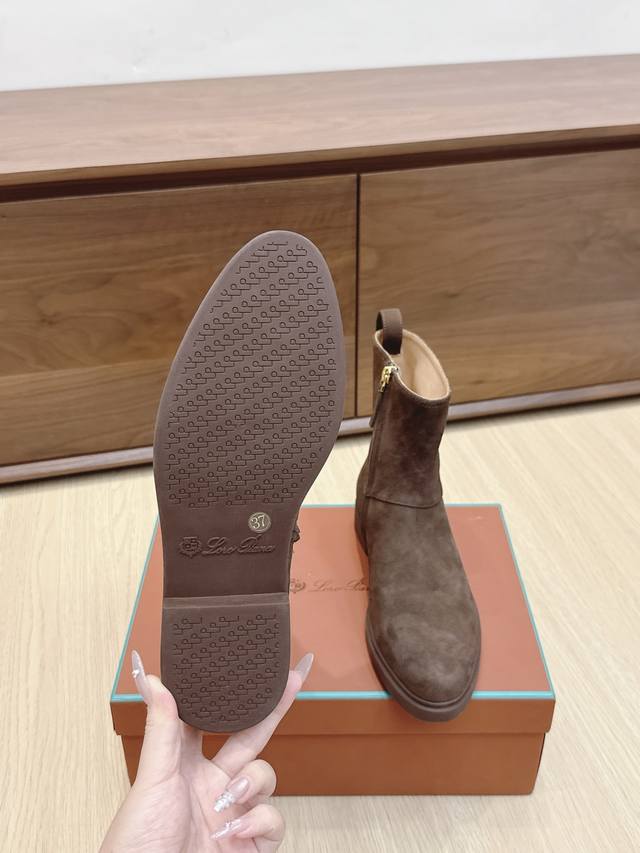 代购级 DDD Loro pian*25S春夏新款 极简复古侧拉链平底短靴 DDD 非常极简复古的款式,鞋面整体就是哑光牛皮面的简单制作,只有纯粹的牛皮质感,唯有靴筒上多了圆环金色,侧面拉链更隐形也更方便穿脱!内里也是采用牛里制作,耐磨又好穿~整体靴筒比较短,所以整体重量超级轻便!橡胶大底更柔软好走哦~ DDD 材质:牛皮 DDD 内里:牛里 DDD 大底:橡胶大底 DDD 鞋码:35-39 40 41定制不退换 DDD