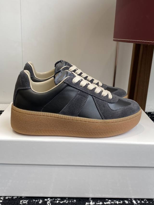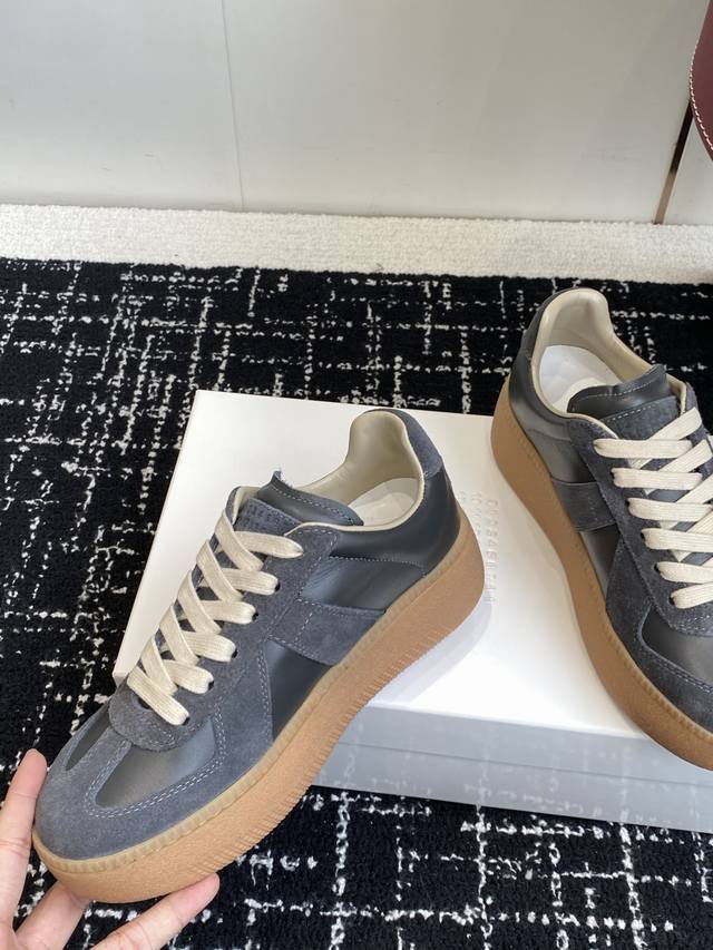 代购级 Maisonmargiela Mm6 马吉拉 厚底 德训鞋 休闲 运动鞋 DDD 原版购入开发 做货 鬼才设计师品牌,一个轻奢品牌 这一款德国训练鞋延续了经典的T形真皮拼接设计,经过设计团队多次的精心改良,只为让您体验最原始的军旅味道~材质:特殊材料 布面,柔软细腻的特点与时尚潮流的布面相结合,使其既有超高的柔软舒适度,又同时保持不错的透气性能~舒适与质感并行,轻松驾驭四季穿着任何搭配 DDD 面料:原版定制进口牛皮 内里:进口柔软羊皮里 大底:原版开模橡胶材质 DDD 底厚:5Cm DDD Si