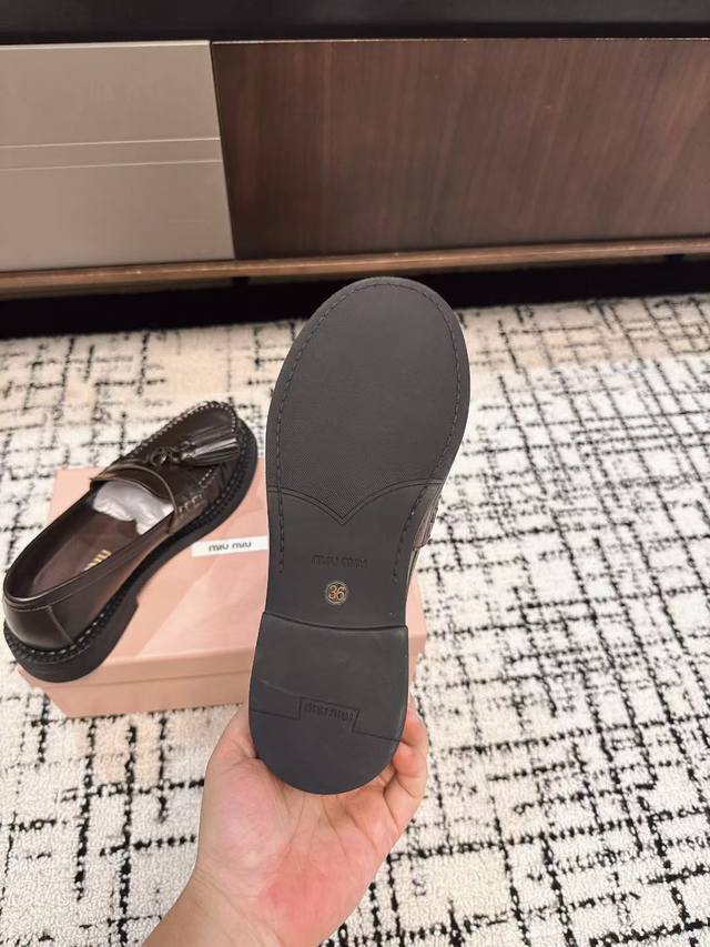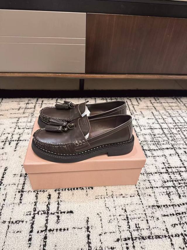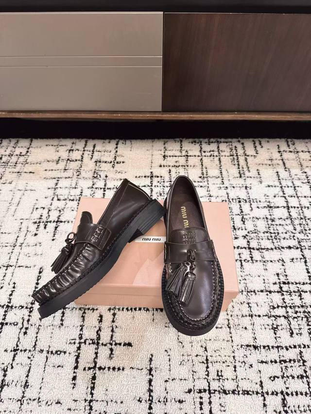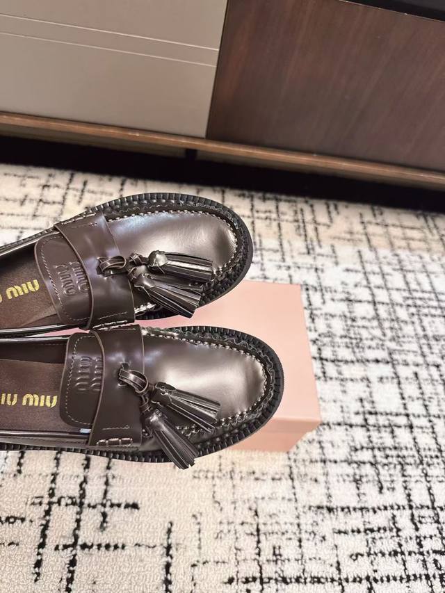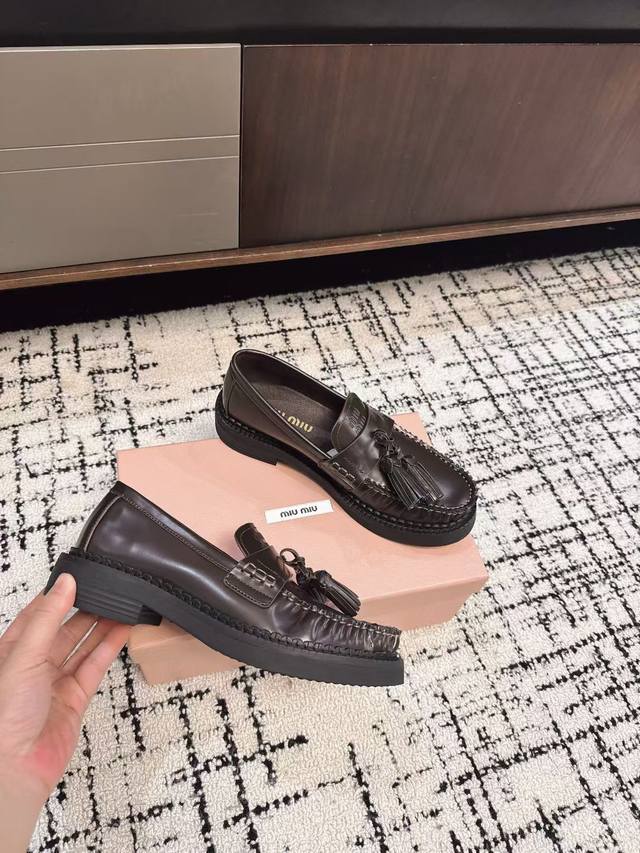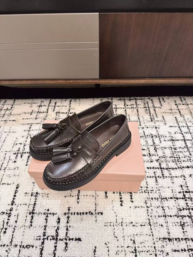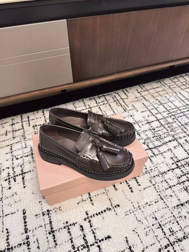 代购级 DDD Miu Miu 25Ss秋冬款 独家爆款 流苏款 乐福鞋 DDD 这季度的Miu简直都太绝了 全系列陆续开始上新 全系列原版购入开发 DDD 进口胎牛开边珠牛皮 内里羊皮 原版独家开模大底 DDD Size:#35-40 40订做不退换 DDD