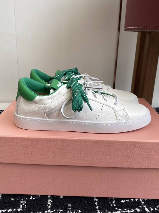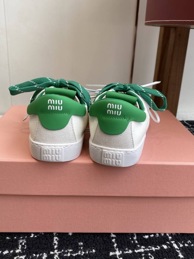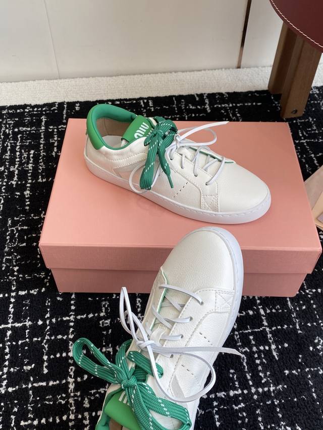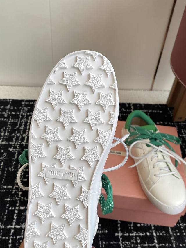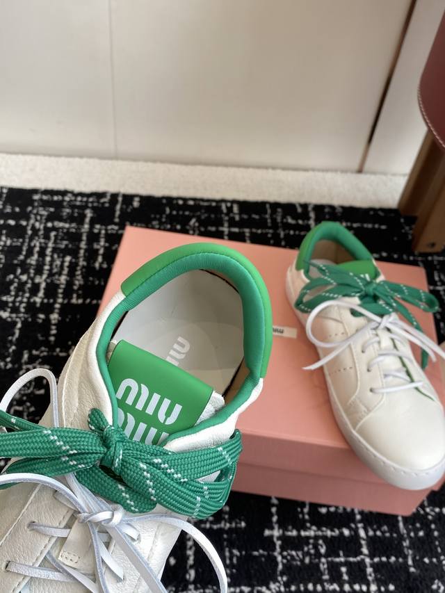 Miu Miu 25Ss 缪缪厚底饼干底 25Ss 春夏新款英伦风系带 小白鞋 休闲鞋