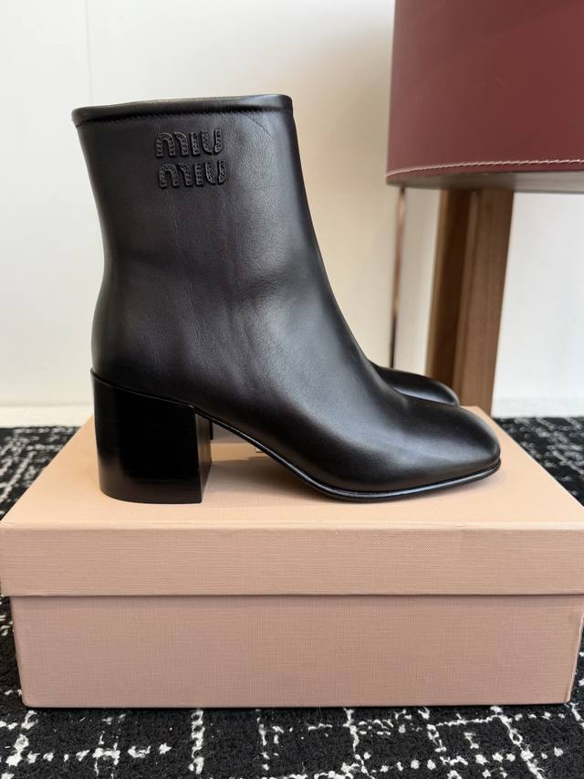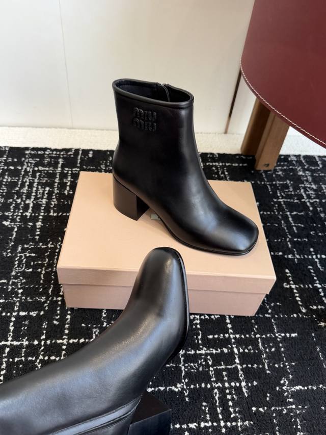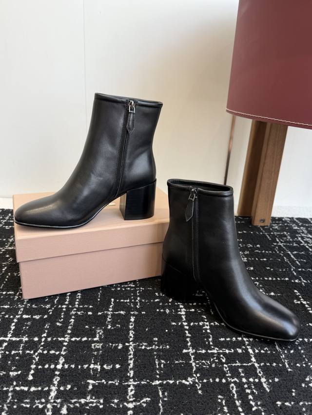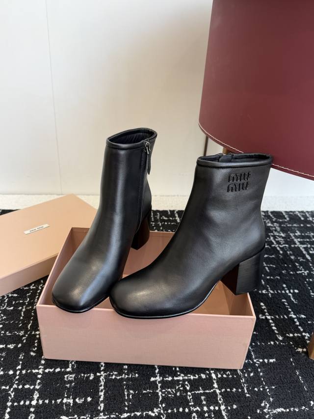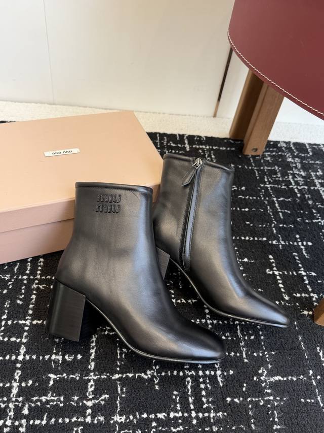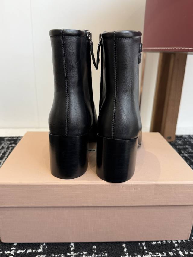 代购级 Miumiu缪缪秋冬最新款复古擦色 短靴 超多明星时尚博主种草 当下最流行的型体隔板设计 结合美拉德色系皮料 打造中性休闲风格 复古做旧皮料高级感满满