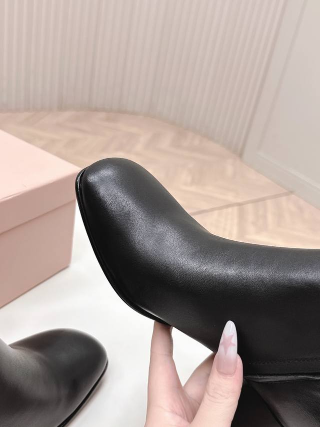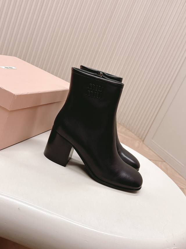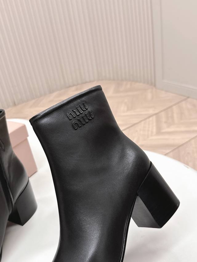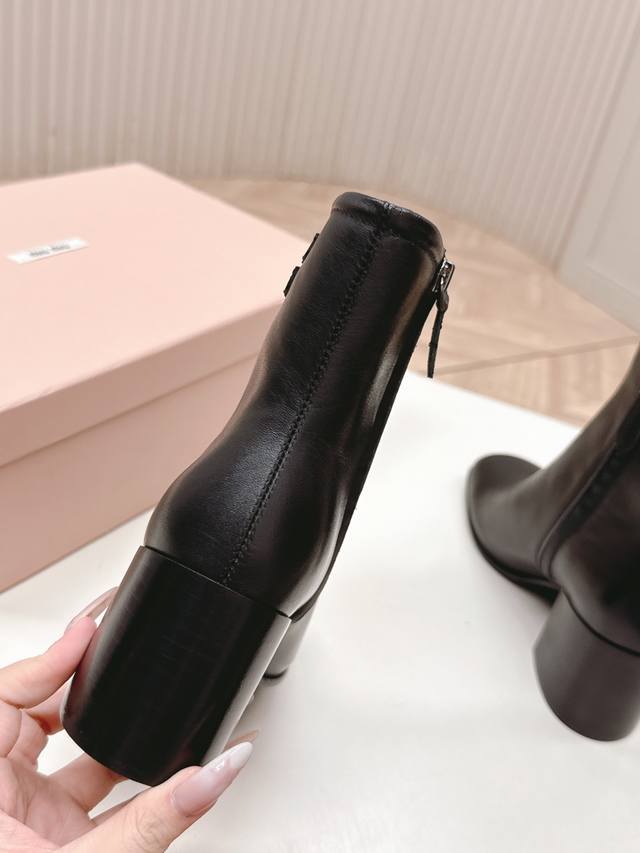/ 代购级 Miumiu缪缪秋冬最新款高跟 短靴 当下最流行的型体隔板设计 结合美拉德色系皮料 打造中性休闲风格 复古皮料高级感满满 酷感十足又不失随性 极具时尚高