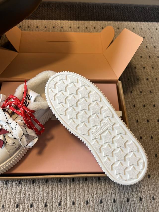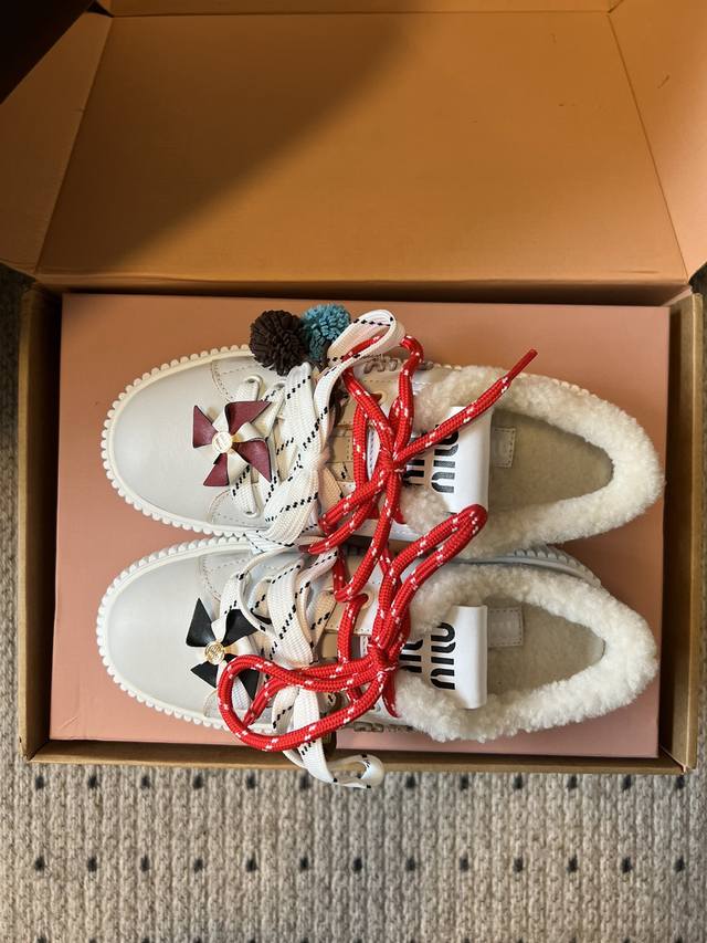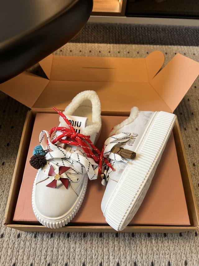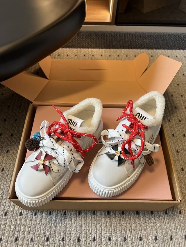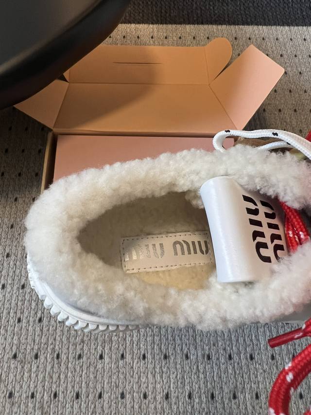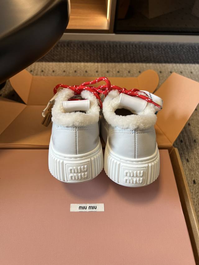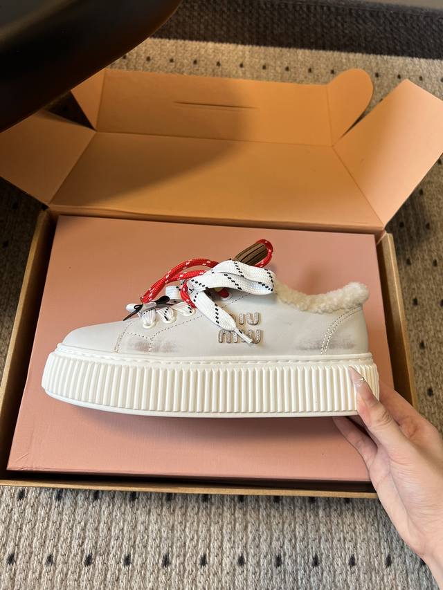 代购级 Miumiu 25Ss 秋冬新款 厚底 小白鞋 羊毛小白鞋