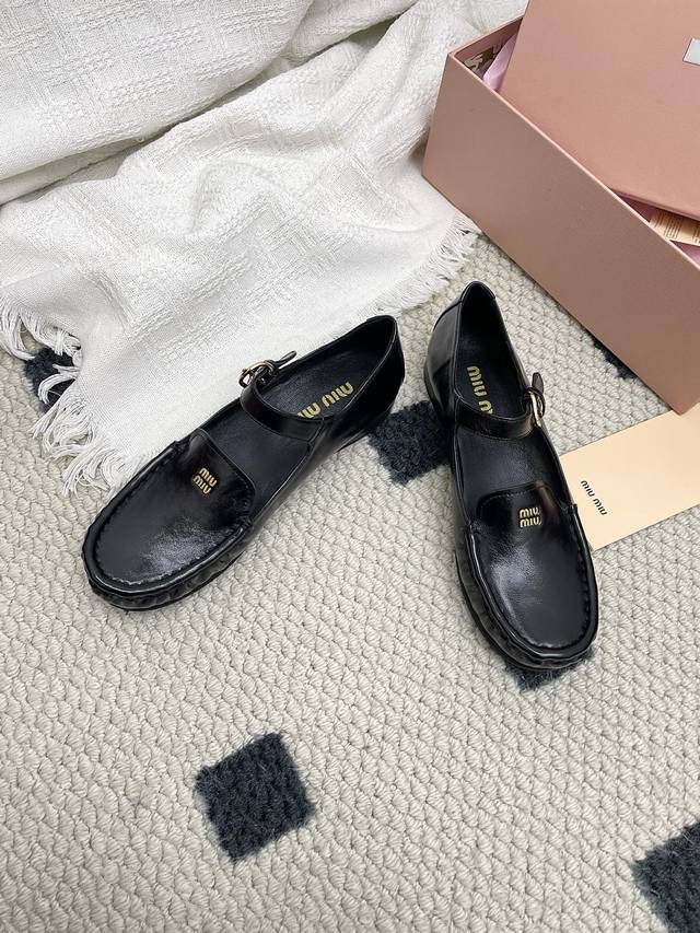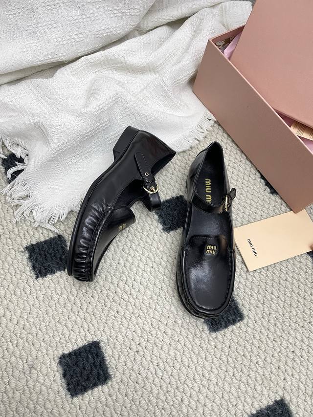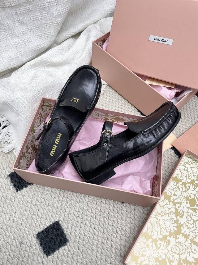 代购级 Miumiu2026早春新款 缪缪 复古玛丽珍鞋! DDD 当少女感碰撞复古肌理,这双鞋就是秋冬日衣橱的氛围开关,甜酷女孩的日常百搭牌。鞋头烫金“Miu Miu”标识+一字扣带,复古玛丽珍的经典轮廓里,藏着品牌独有的娇俏少女感;鞋边手工褶皱缝线,把松弛感揉进每一步。 DDD 鞋面:进口羊皮 DDD 内里:羊皮 DDD 大底:橡胶大底 DDD Size:35-40 40定做不退换 DDD