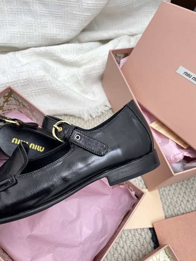 / 代购级 Miumiu2026早春新款 缪缪 复古玛丽珍鞋! 当少女感碰撞复古肌理,这双鞋就是秋冬日衣橱的氛围开关,甜酷女孩的日常百搭牌。鞋头烫金“Miu Miu