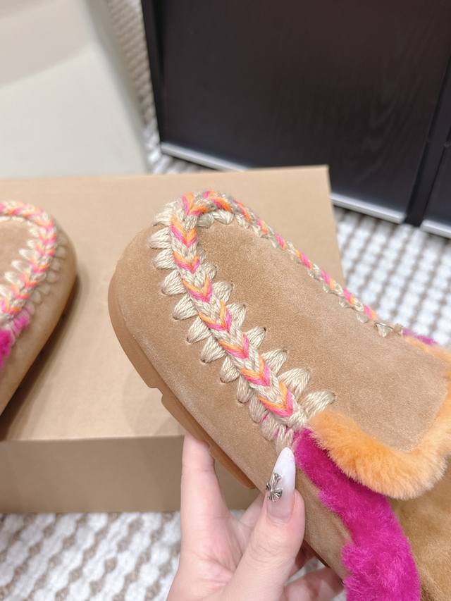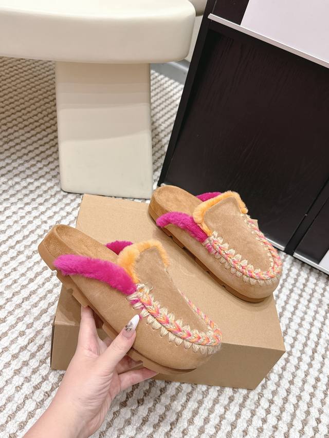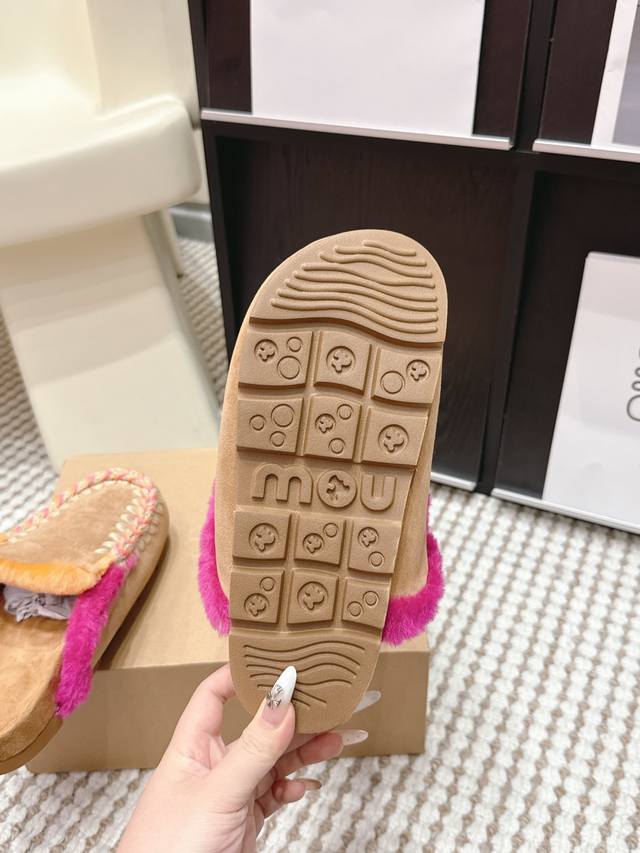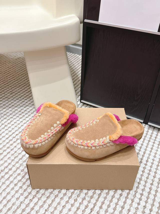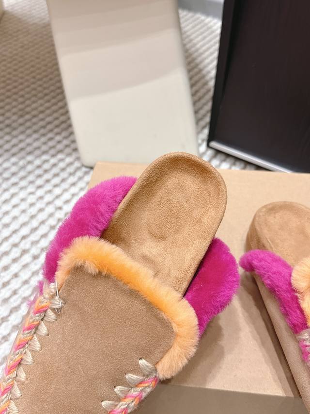 代购级 Ddd Mou 小众潮牌 25Ss秋冬新品 博肯 毛拖 DDD 居家不失舒适与精致一双弹力厚底羊毛拖鞋慵懒而温暖 Ddd 脚掌如同陷入了轻柔的拥抱中柔软的羊皮毛一体皮料结合无论外出还是居家 Ddd 让冬季充满美拉德浪漫 DDD 鞋面:麂皮鞋面 重工民族风手工衍边 内里垫脚:羊毛 鞋底:原版软橡胶大底 DDD Size:35-39 40.41定做不退换 DDD