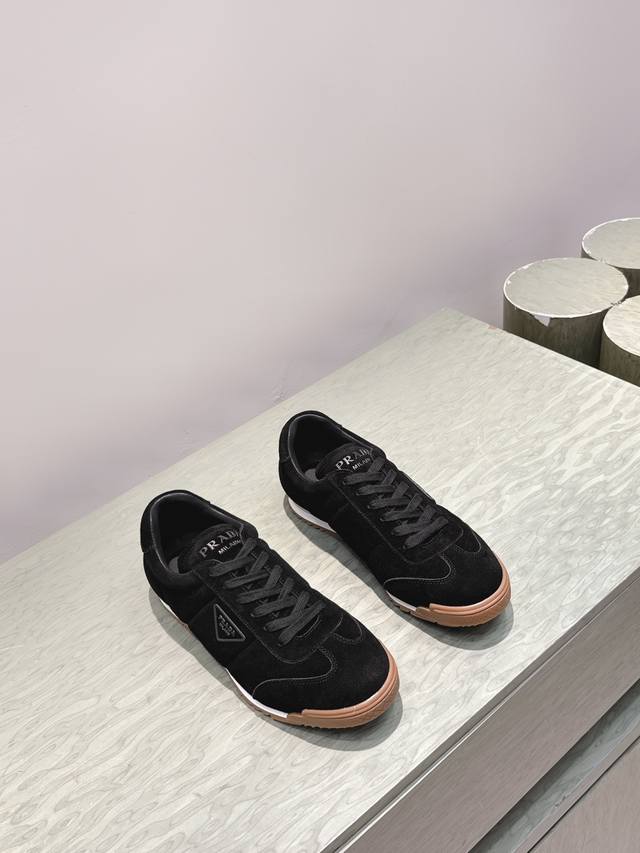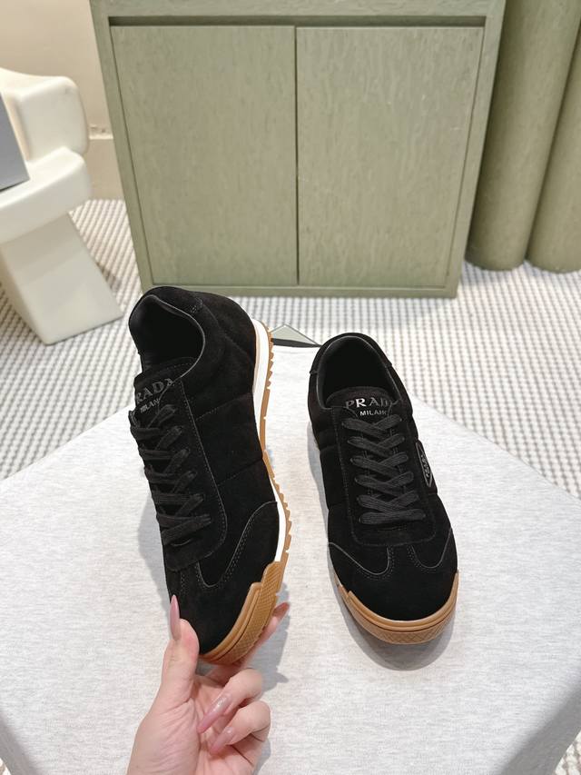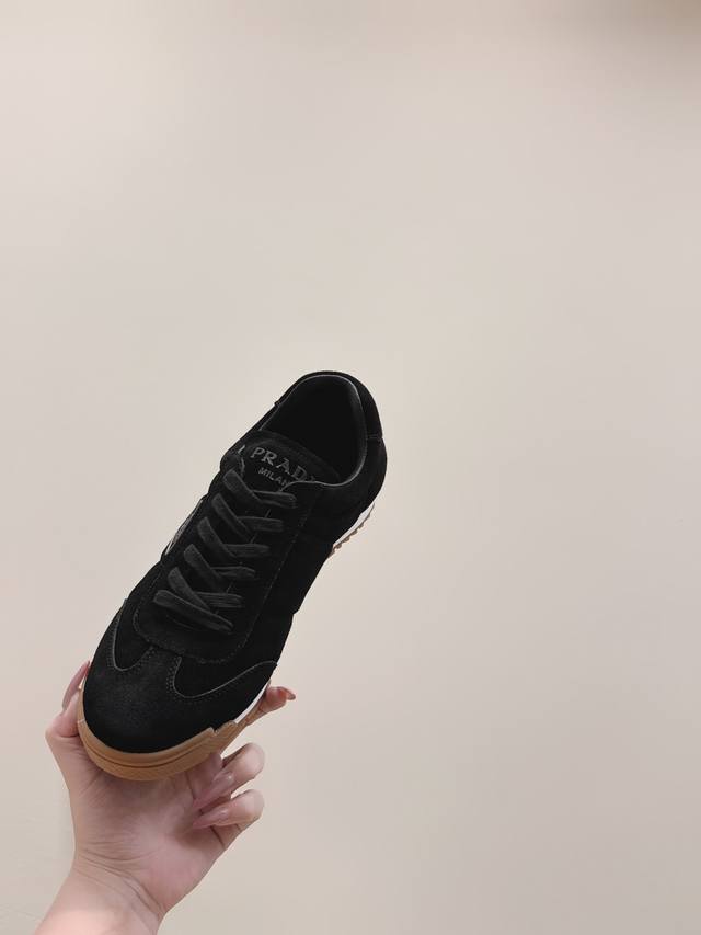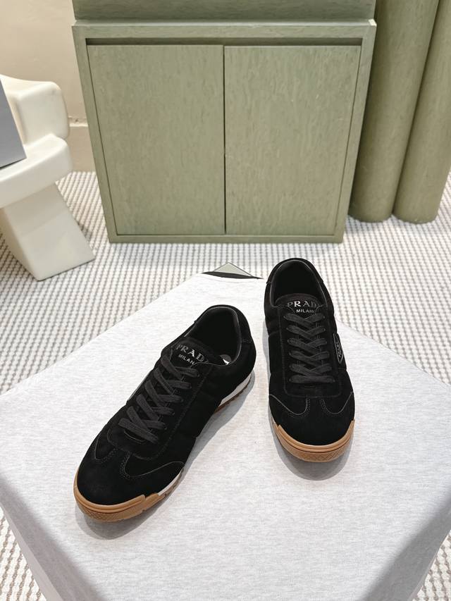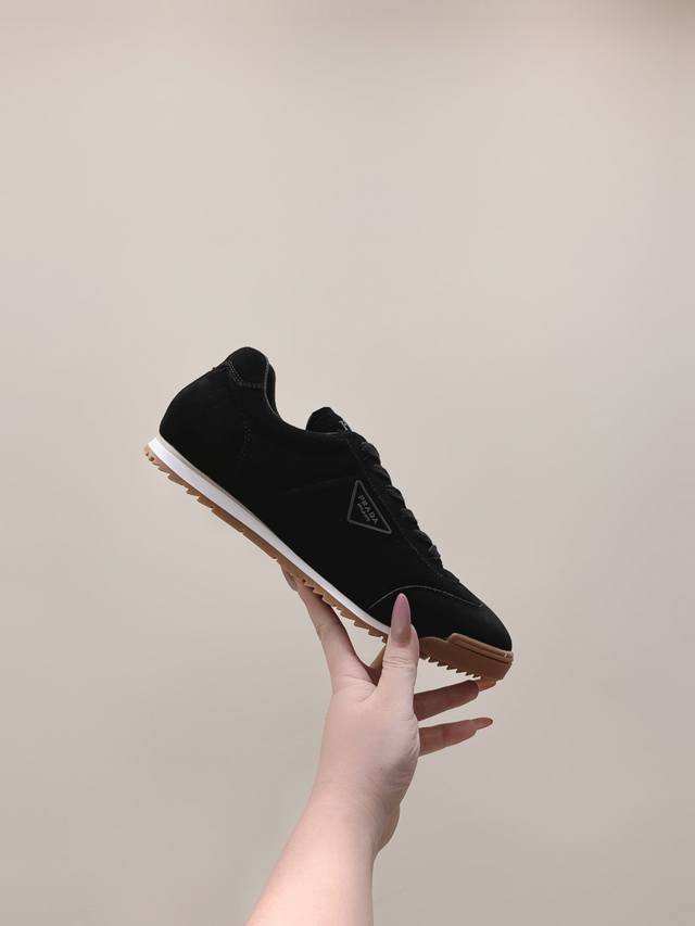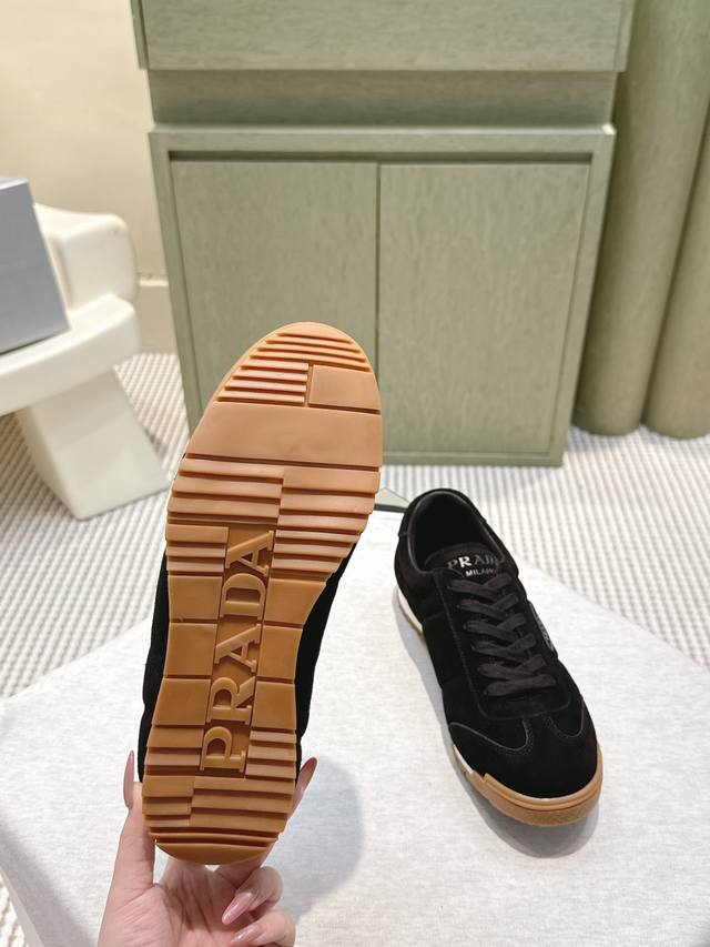 / 代购级 prada2025秋冬新款情侣运动鞋,简约低调,帆布+皮革拼接,质感满分又透气!橡胶鞋底防滑,日常通勤、休闲都Ok。鞋侧“prada”标志超有辨识度,低