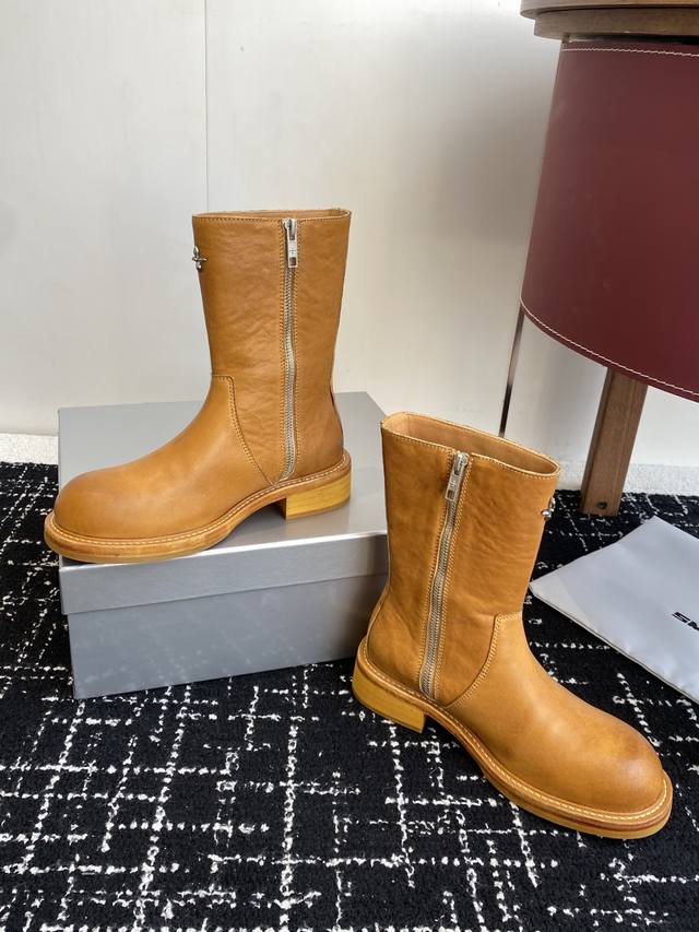 / 代购级 Smfk十字架新款 含金量谁懂 短靴秋天里的一抹黄,其实它很帅升级版的 这双短靴是很有质感的油蜡黄色 配合马皮面料制作而成 大底使用固特异工艺进行固定缝