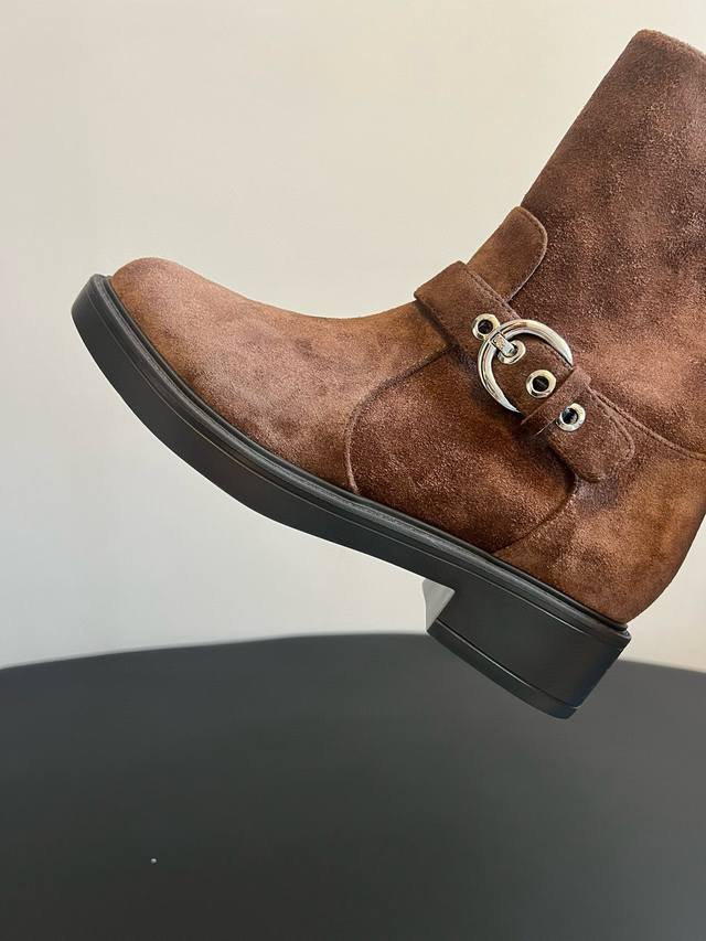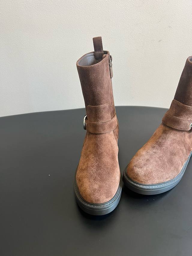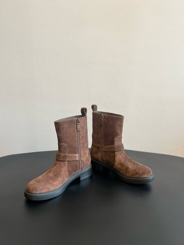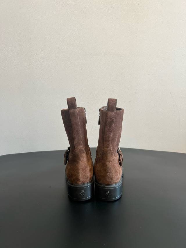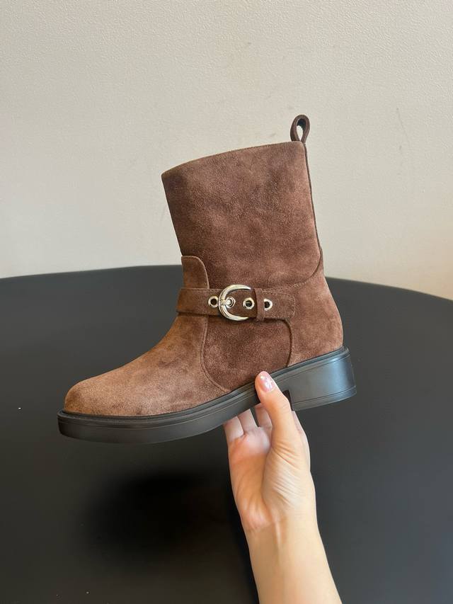 代购级 Sw25 复古摩登侧拉链短靴 DDD 鞋身带有金属扣饰的皮带设计,增添了朋克与复古的风格元素;配备侧边拉链,穿脱方便;采用厚底粗跟,在提升身高的同时,保证了行走的稳定性,风格偏向于复古机车风与休闲风的结合。 DDD 与卡其色或棕色系的半身裙、A字裙搭配,上衣搭配同色系的毛衣或针织衫,营造复古温柔的秋冬穿搭;也可与黑色紧身裤搭配,上衣选择灰色大衣,展现复古与高级感并存的风格。 DDD 鞋面:牛反绒 牛皮 DDD 内里:羊皮 DDD 大底:Ip发泡大底 DDD 码数:35 40 40定做不退不换 DD