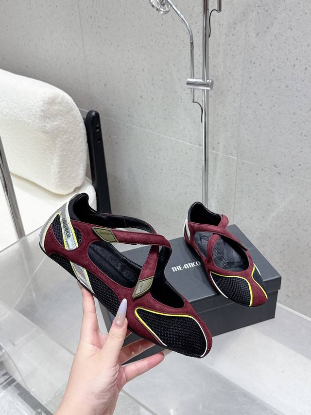 被各大品牌钟爱的芭蕾舞鞋款,以各自独有的风格被重新演绎。来自意大利的The Attico也没有错过这次机会!品牌设计前卫大胆,无论是堆堆袜靴、超阔腿牛仔工装裤都曾被Rihanna、Kylie Jenner等名人Pick过。