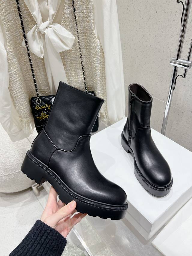 The Row真皮法式复古方头极简百搭平底厚底切尔西短靴脚真的是史上我穿过最最舒服的款式太柔软啦!
