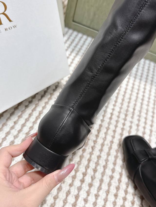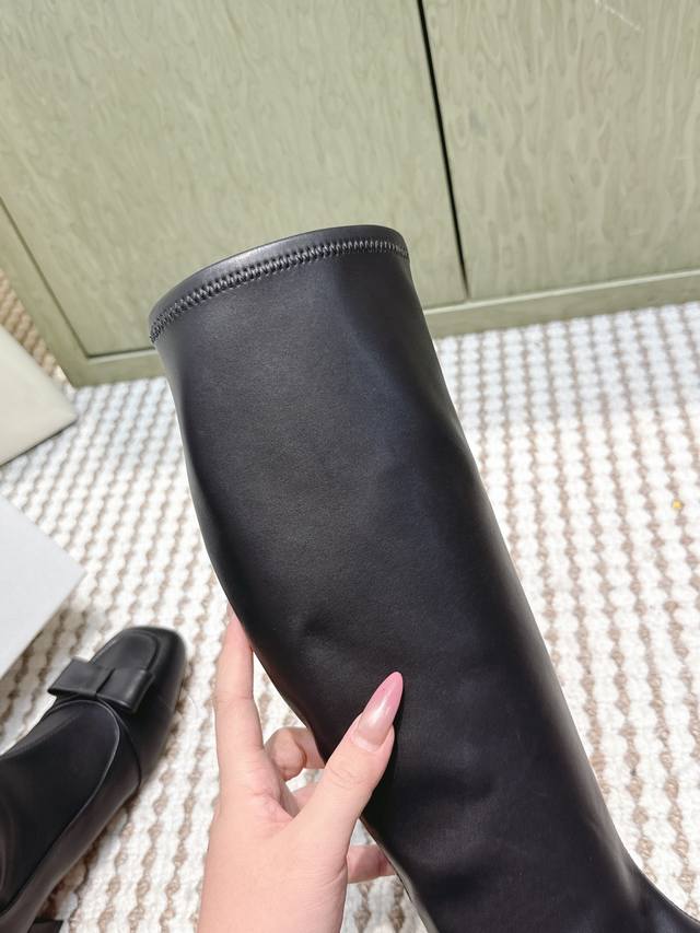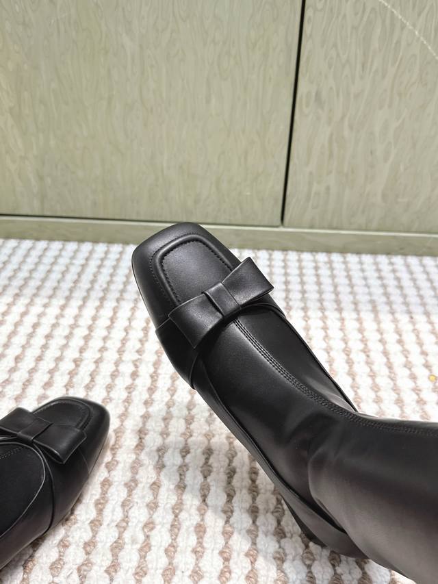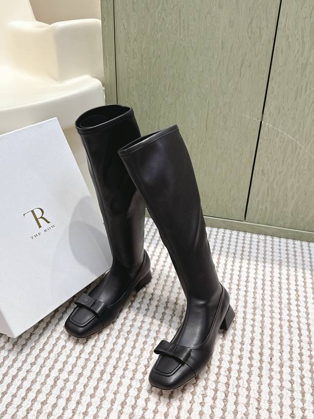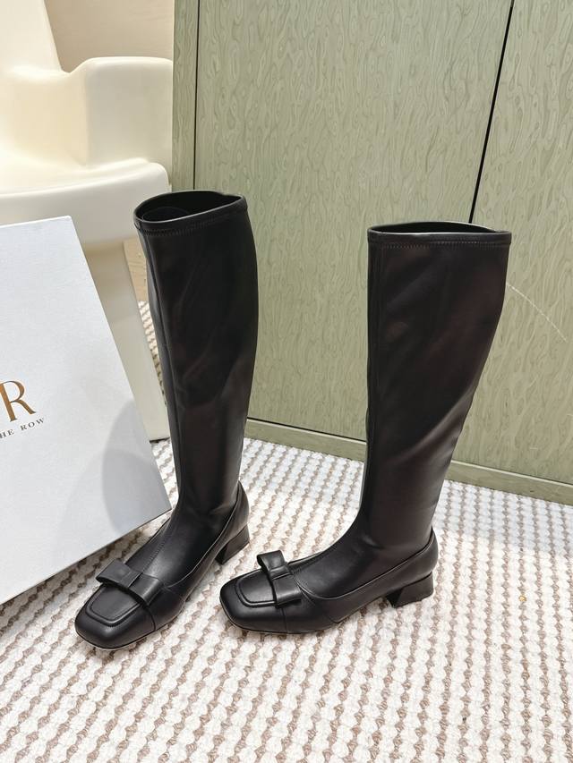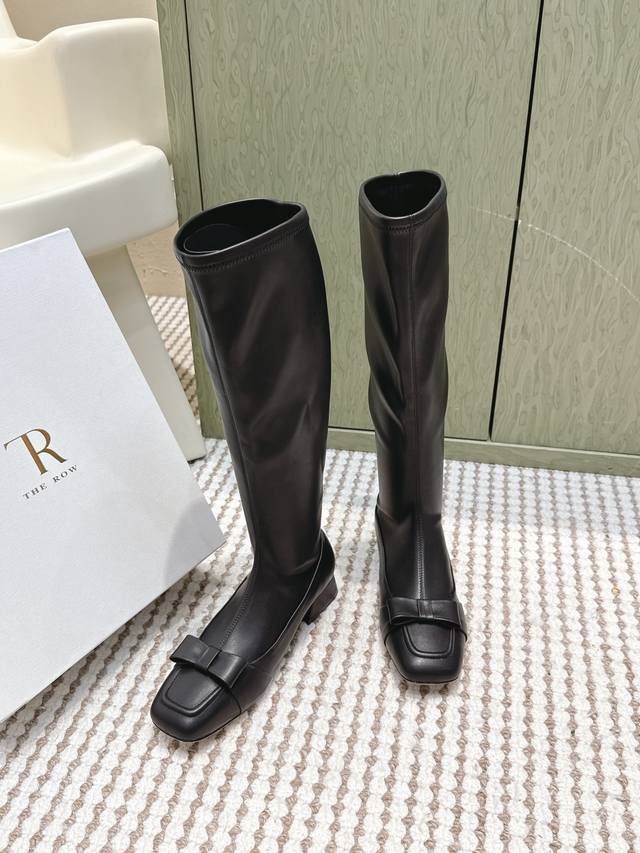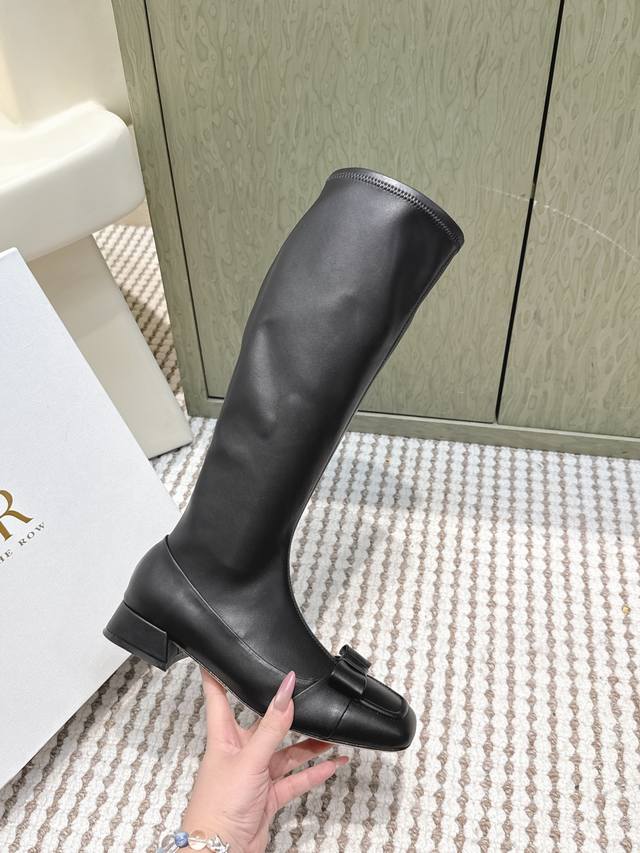 代购级 DDD The Row25Ss复古蝴蝶结长筒靴 DDD 延续品牌“极简奢华”的风格,靴型修长流畅,贴合腿部线条,视觉上极具延伸感,轻松打造“大长腿”效果。鞋头处装饰精致蝴蝶结,为极简设计注入柔美元素,平衡硬朗与优雅;靴筒高度适中,适配多种裤装、裙装搭配。 DDD 采用高级皮革和绒面革材质,质感细腻奢华,意大利制鞋工艺确保版型挺括、穿着舒适。色彩选择沉稳大气,百搭且不易过时;低跟设计兼顾舒适度与造型感,可适配日常通勤、休闲出街等多种场景,诠释品牌低调而高级的时尚语言。 DDD Size:35-40码