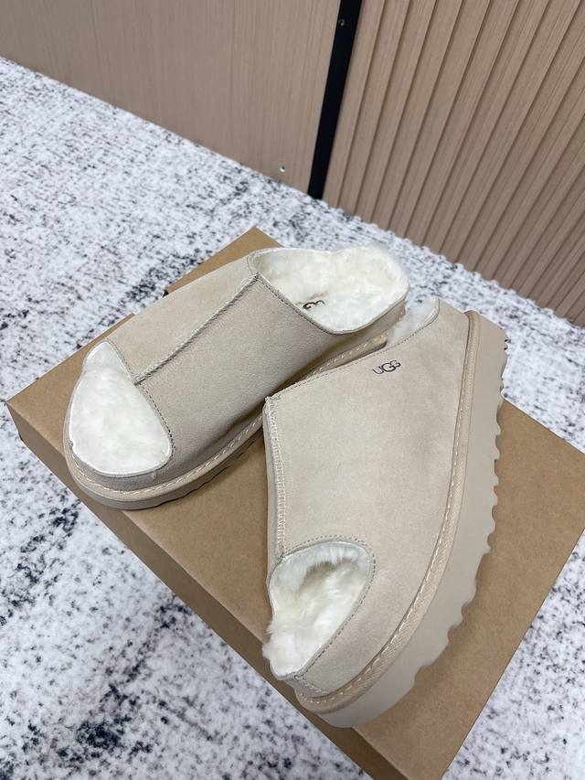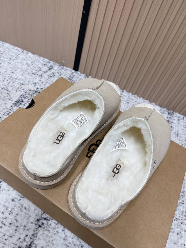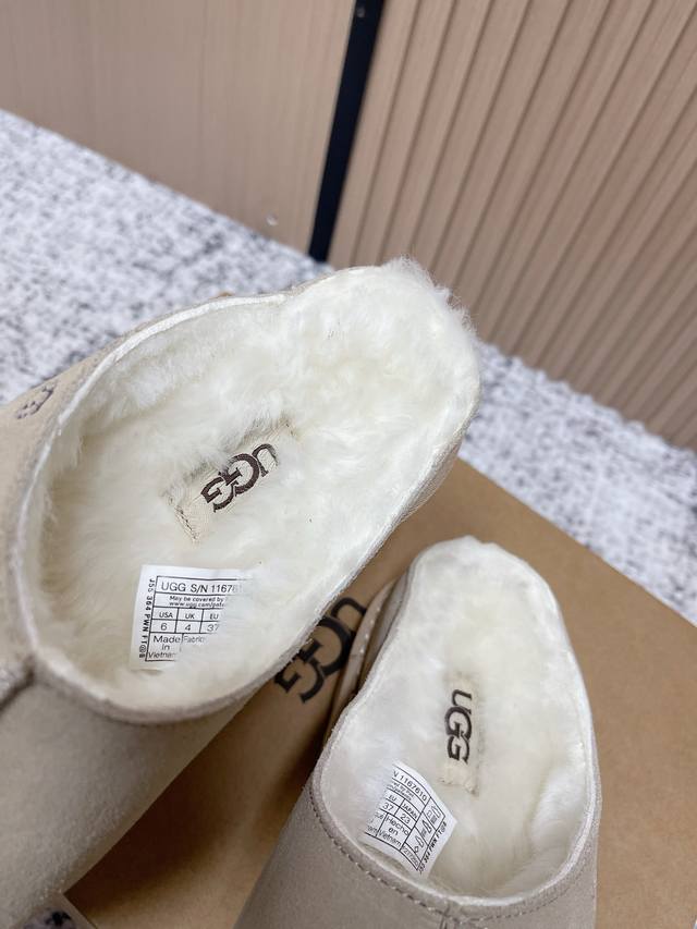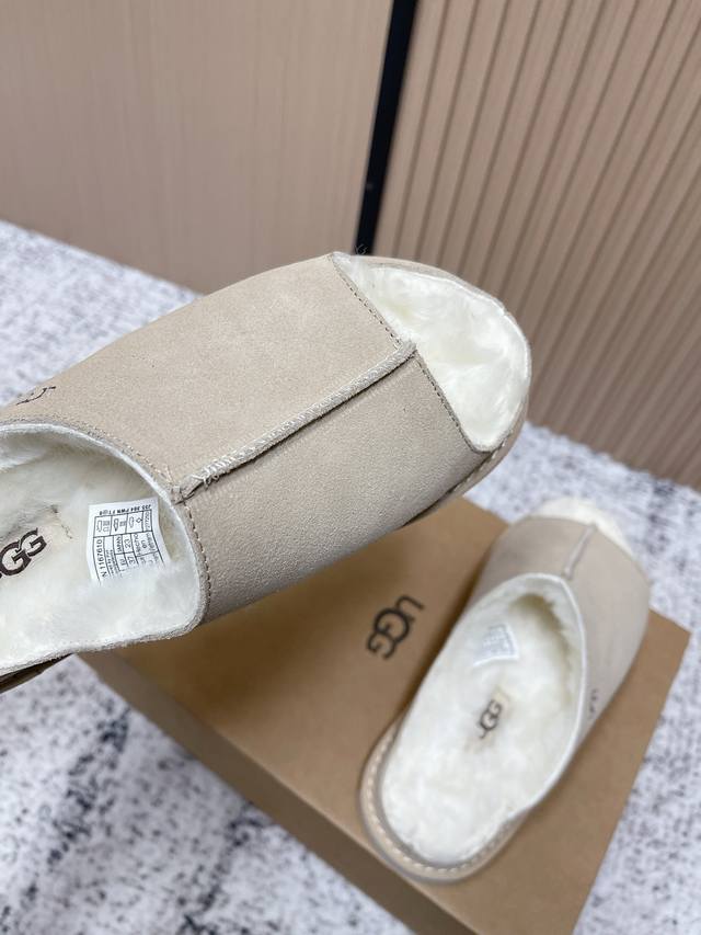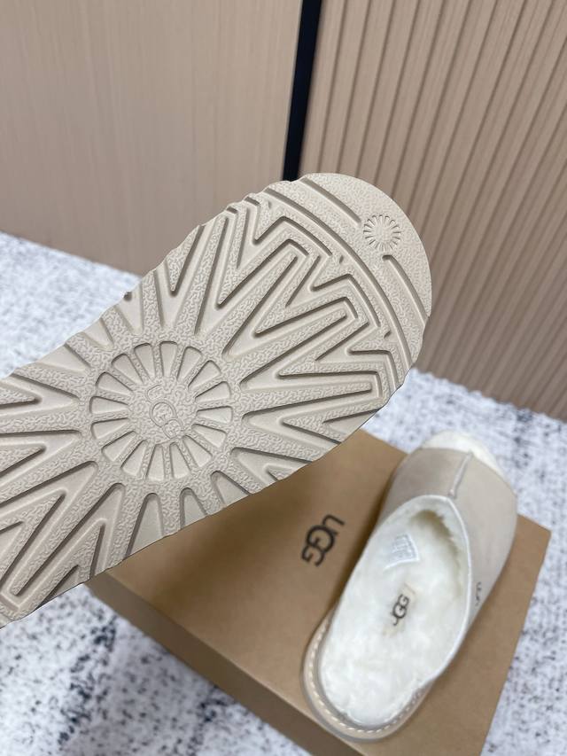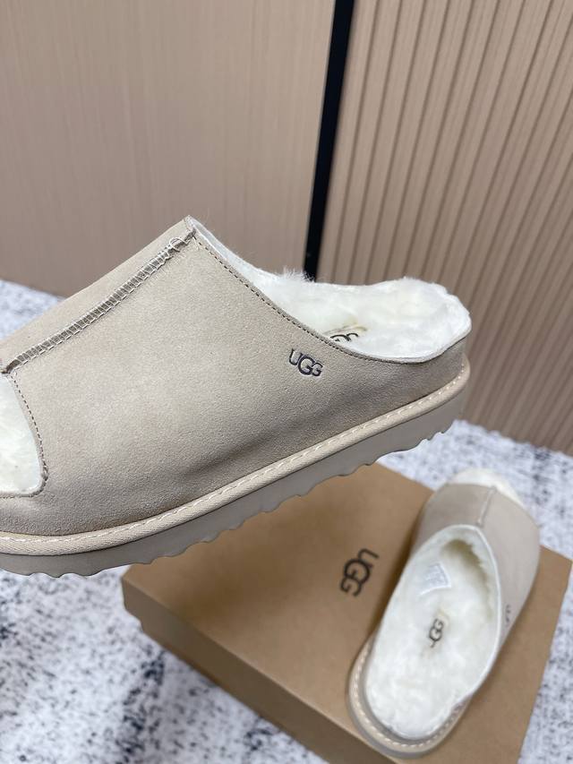 代购级: Ugg 25秋冬新款 便鞋新生系列 安思丽穆勒拖 时尚舒适浅口平底一脚蹬 半拖 经典翻毛牛皮搭配10毫米羊毛里衬 鞋内底 翻毛领 茸软舒适 后侧饰有U