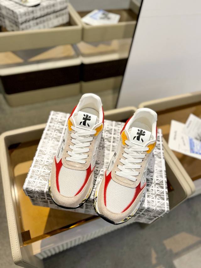 价格p: DDD 普瑞米亚达 DDD premiata Lander Trainers DDD 兰诺系列米字低帮复古百搭 休闲训练运动鞋 DDD premiata是意大利品牌。premiata依据国际高标准,使用意大利面料和精致皮革制造运动鞋,此外,根据不同的型号,采用世界各地优质技术供应商提供的鞋底。premiata致力于将传统制鞋方法,以及高科技研发成果融入鞋履设计中。这个创立于1885年的制鞋品牌,通过对历史进行现代演绎,以极度热忱和无限创意打造出一款款鞋履作品,是顶级意大利手工艺代表。 DDD 普