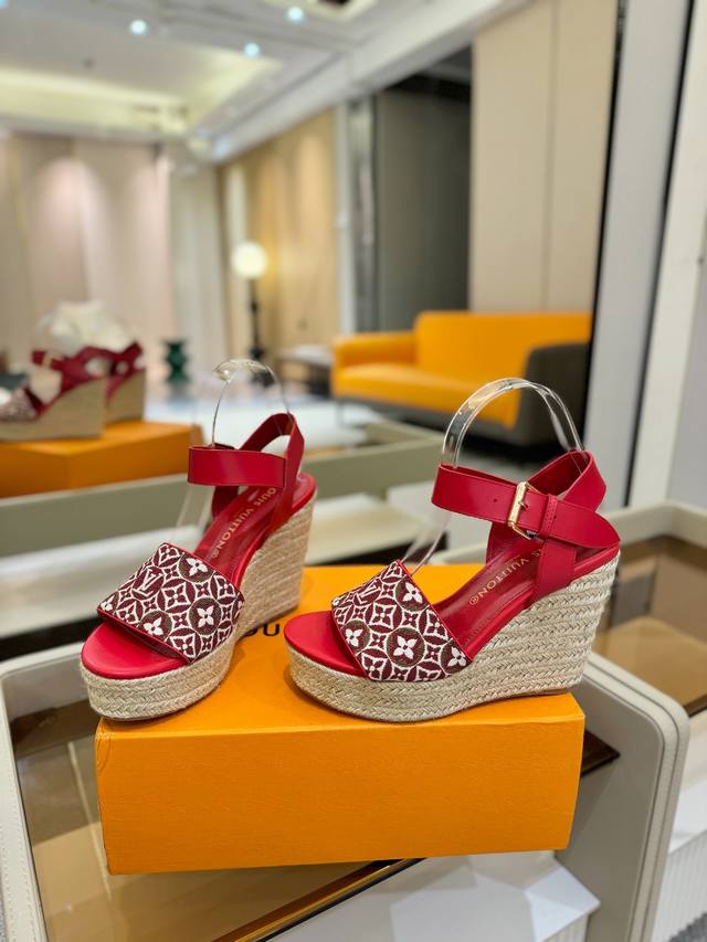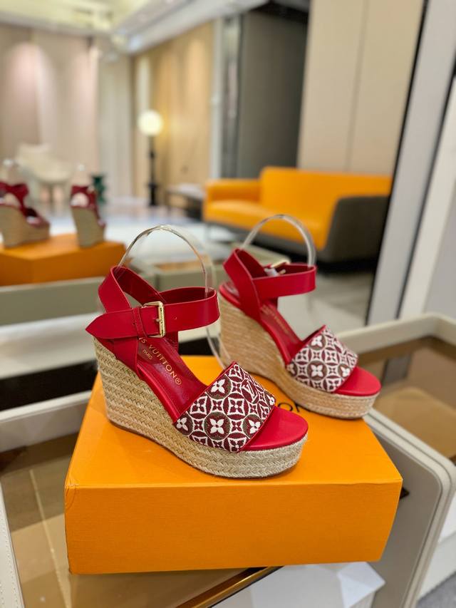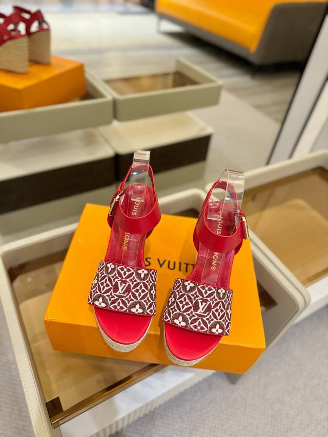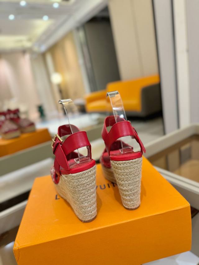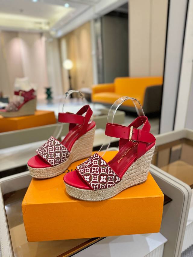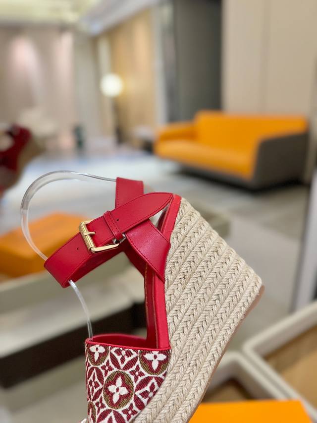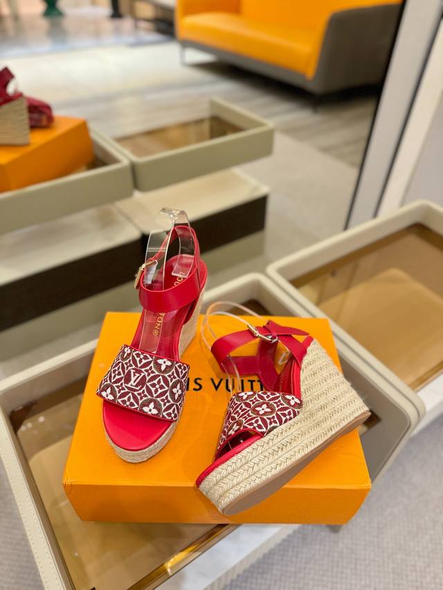 价格P: L V 走秀款厚底麻绳凉鞋 香港原版购入一比一开模 今年的款式比去年增加了新原素 显得更为大牌 鞋面采用原版电绣配仿旧打蜡牛皮 内里垫脚全羊皮 水台草