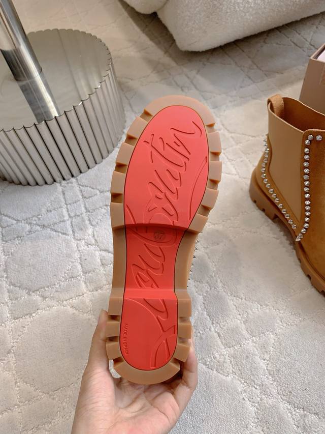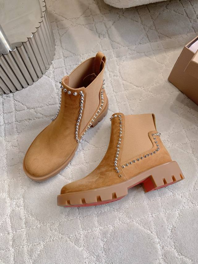光面 铆钉 Christian Loubouti*新款切尔西厚底短靴 上脚超级显瘦 秋冬百搭神器 好穿不累脚 鞋面牛皮 羊京 内里垫脚羊皮 原版开模大底 底厚4