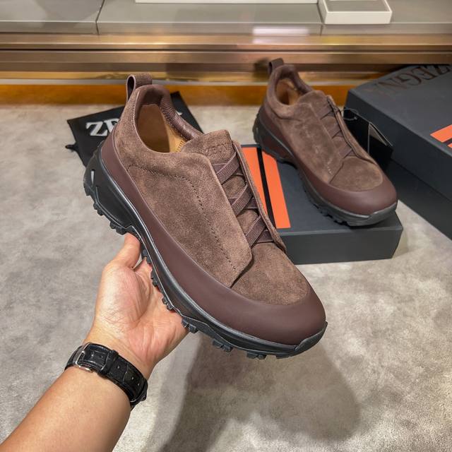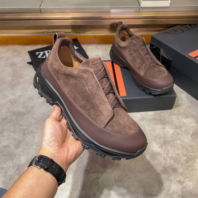 FFF 全新系列Zegna杰尼亚男鞋绒面革 Triple Stitchmonte奢华休闲鞋 最新走秀款官网同步 DDD Product Informationmonte MóN Te 在意大利语中意为“高山”。其灵感源自杰尼亚绿洲中的林荫小径。Triple Stitcht Monte奢华休闲鞋以徒步旅行为目标,是全年之内任何时节外出旅行时的良伴。鞋履采用百搭的低帮款式,点缀灵感源自杰尼亚夹克手工缝线的三交叉细节,同时配备能够在户外活动时提供更大摩擦力的创新! DDD 杰尼亚著名精裁系列手工三重缝线设计,强